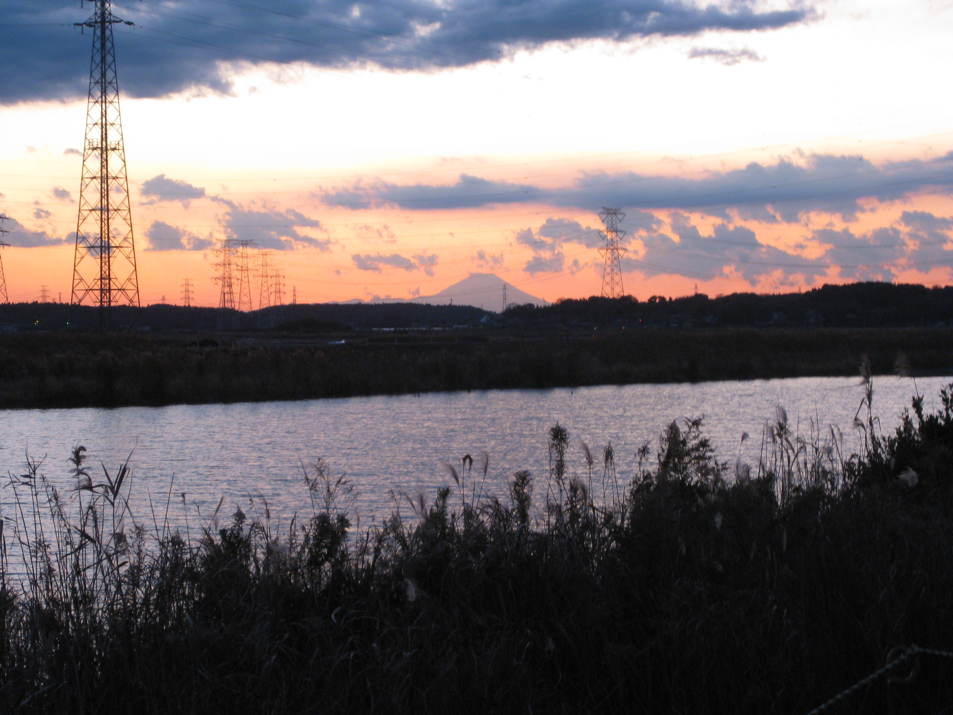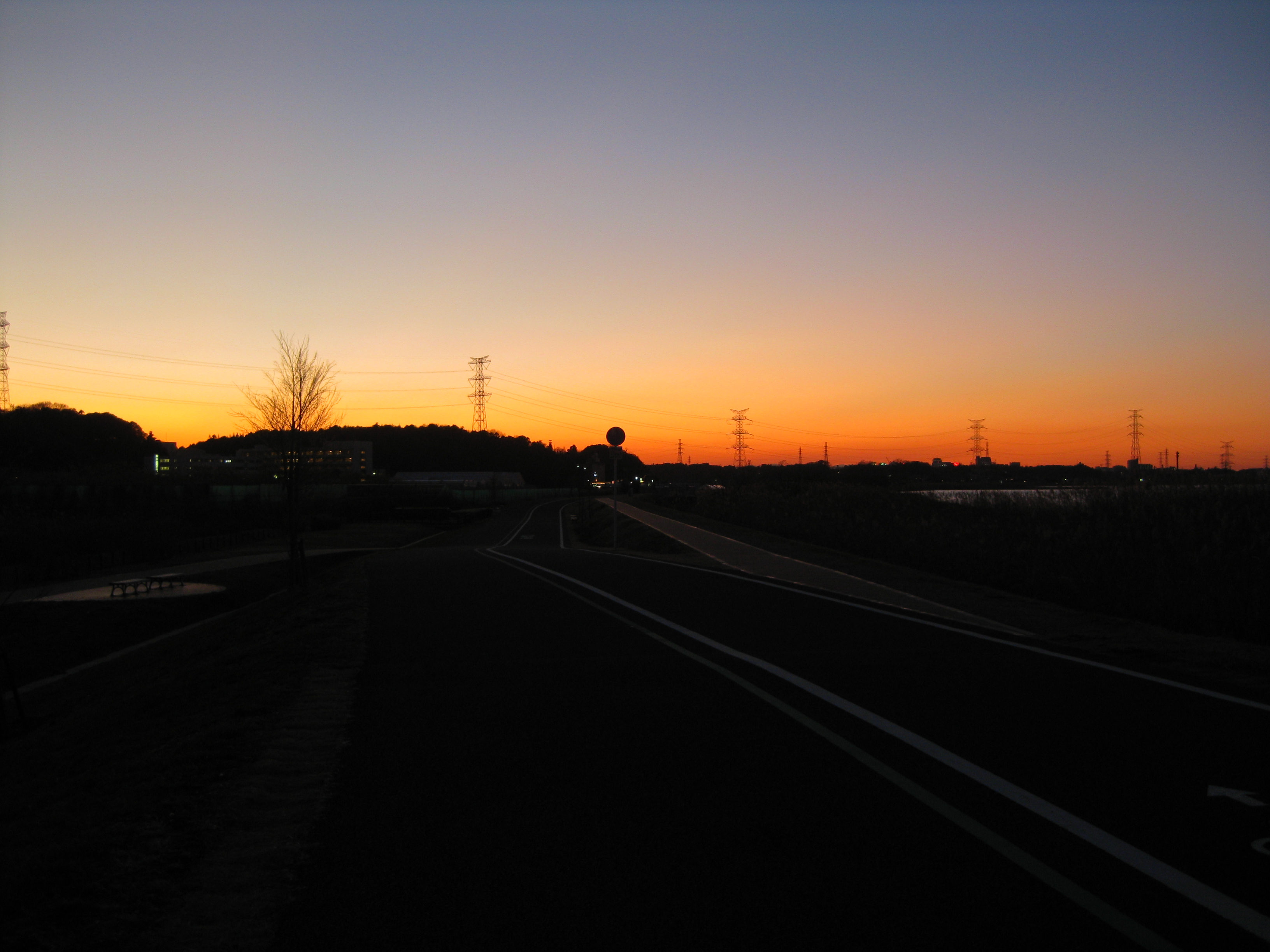 冬の夕焼けはいいですね〜。癒されますね〜。