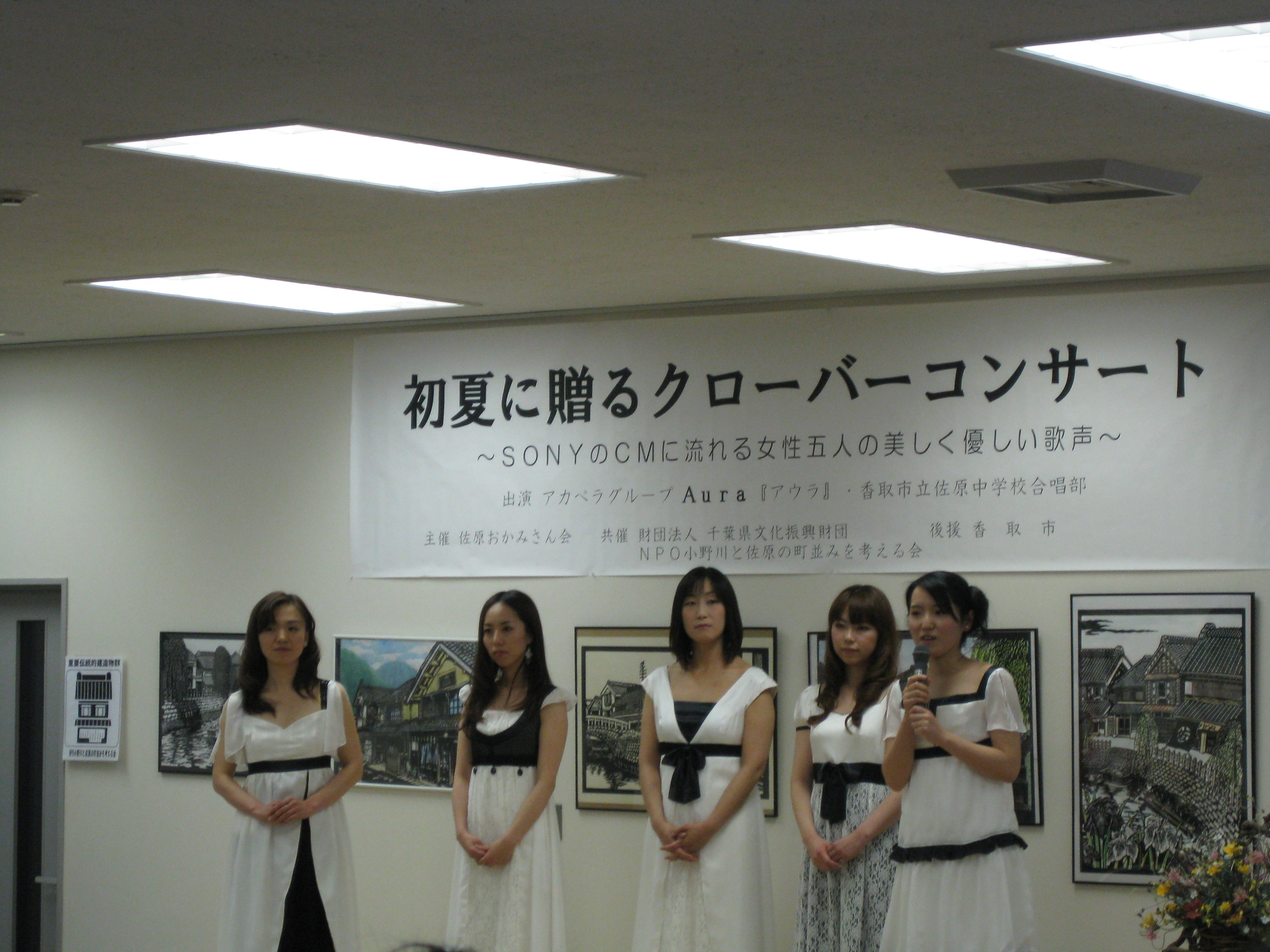 本日アカペラのコンサートがあるとのことでしばらく待っていると始まりました。 はじめは佐原中学校の合唱部さんがコンサートを聴くときの注意事項?をアカペラで歌い上げた!(*?∀?)っ コレがまたよく出来ていてうわ〜ビデオで撮りたかった〜と思うほど。簡潔な内容は『聞くときはおしゃべりしないで〜シーシー!』(だったかな?)