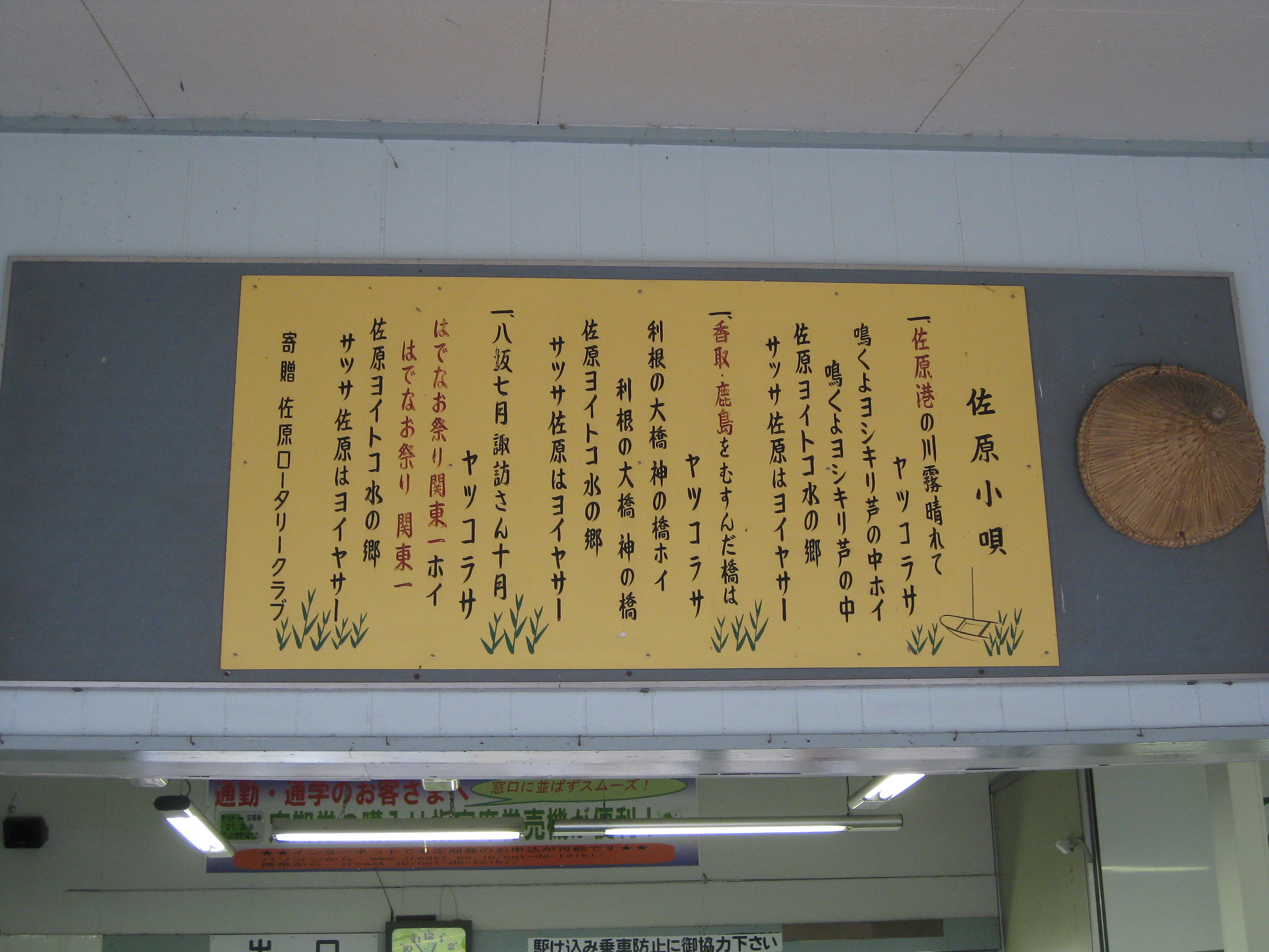 駅に入り口に掛けてある『佐原小唄』 イイカンジです。