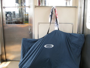 駅で輪行解除。お土産の餃子をむりやり?固定して