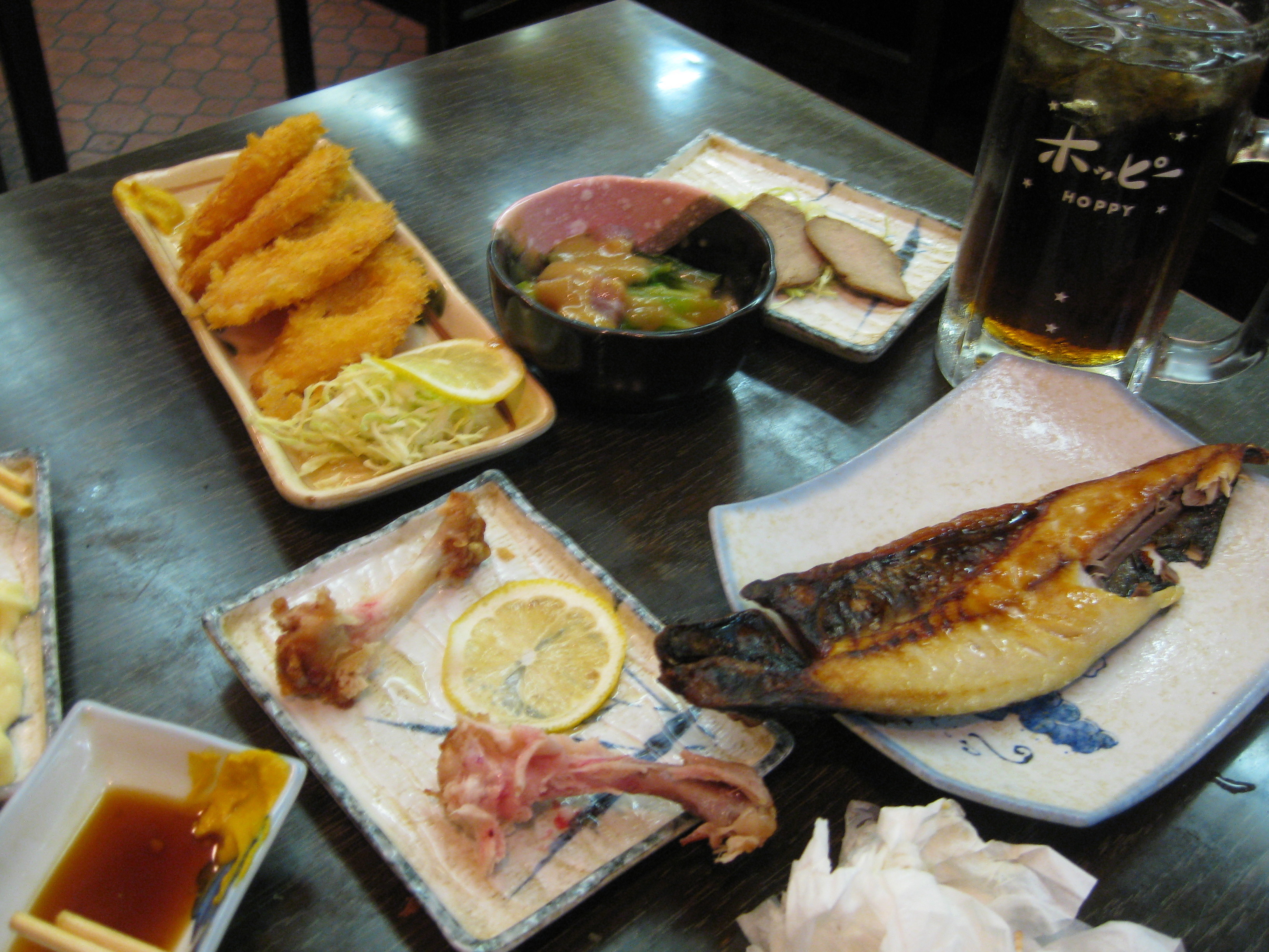 食べかけの写真ですいません。たらふく飲んで食べてもお財布にやさしい良いお店です。