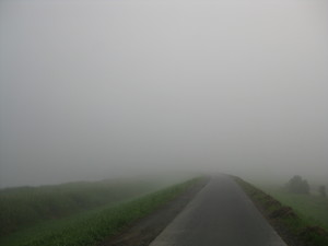 今日は霧がすごい! 先が見えませ〜ん!