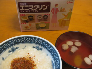 昼食 おかゆ 梅おかかふりかけ すまし汁