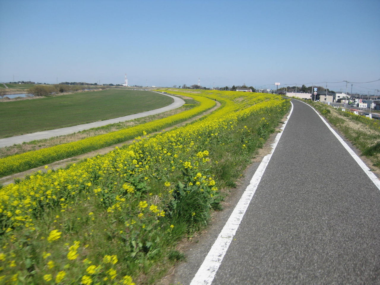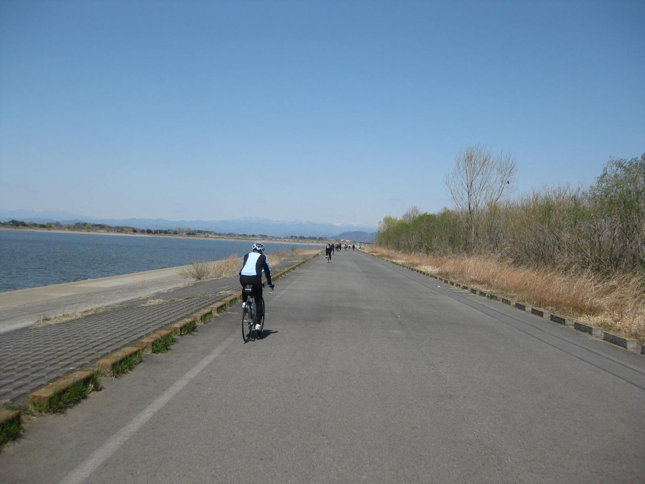 遊水地の道は走りやすい! でも向かい風なり( ?.. ?)=3 フン