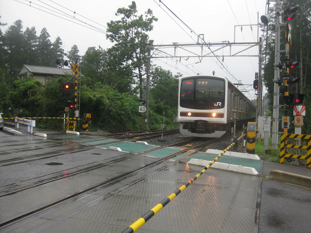 文鋏駅の踏切でJR日光線をパチリ。 鉄分補給?