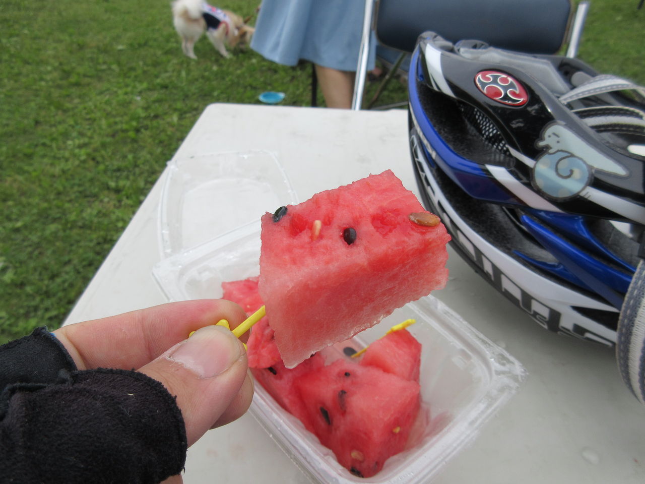 花より団子・・・いや西瓜っす うまうまです(●くろまる ?ω`●くろまる)