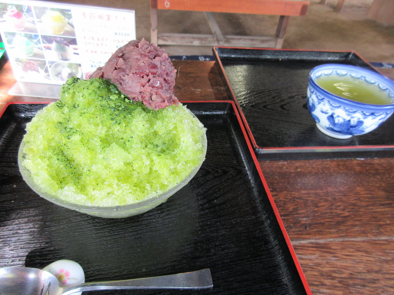 抹茶あずきでマッチャリ。 熱いお茶を頂きながらかき氷を食すべし。