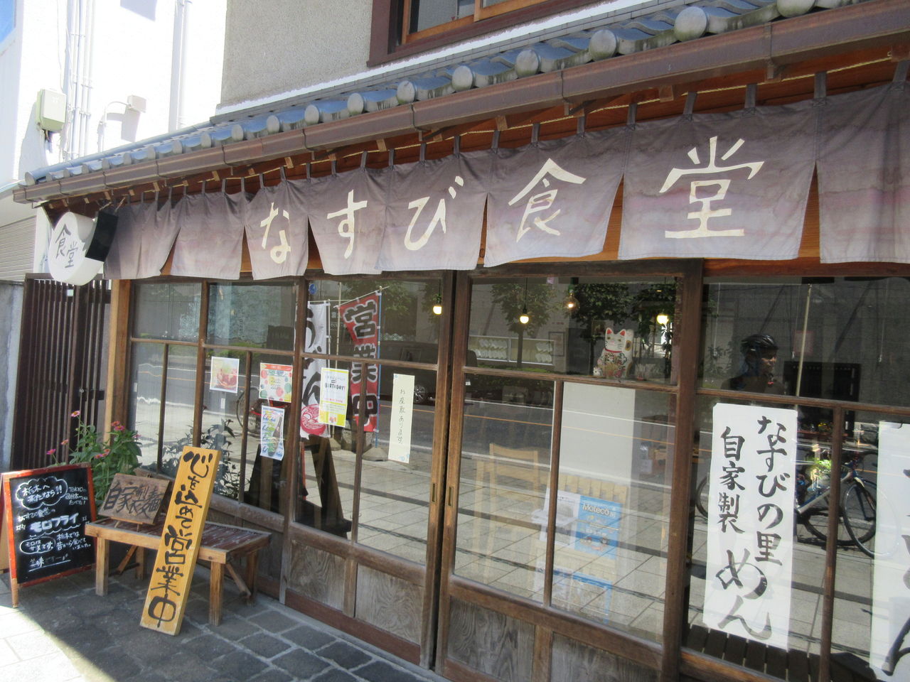 『なすび食堂』 街並みの雰囲気に合った佇まいが良いですね。 冷房もバッチリ