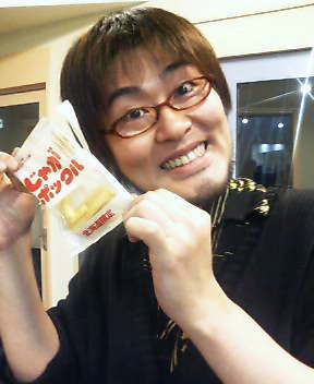 北海道限定のお菓子を手に収録後の鷲崎です。