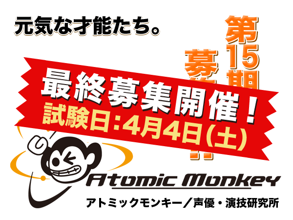 アトミックモンキー/声優・演技研究所「第15期生 最終募集開催決定」のお知らせ!!