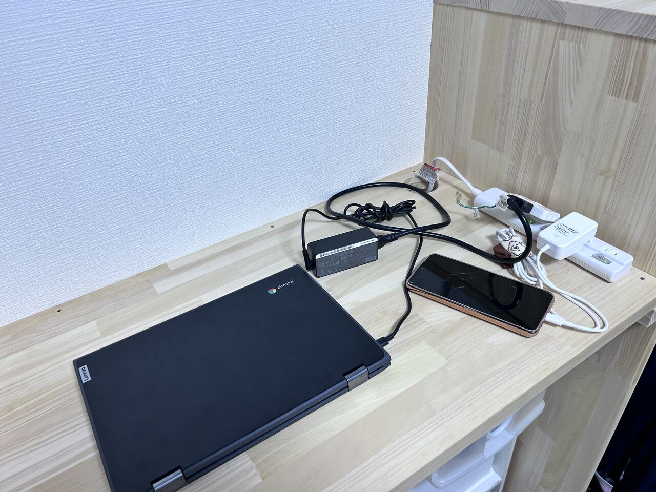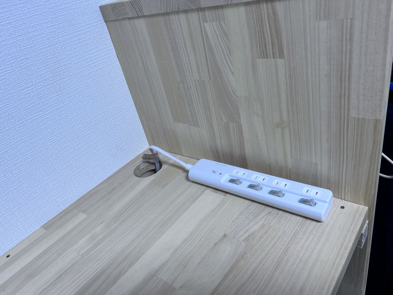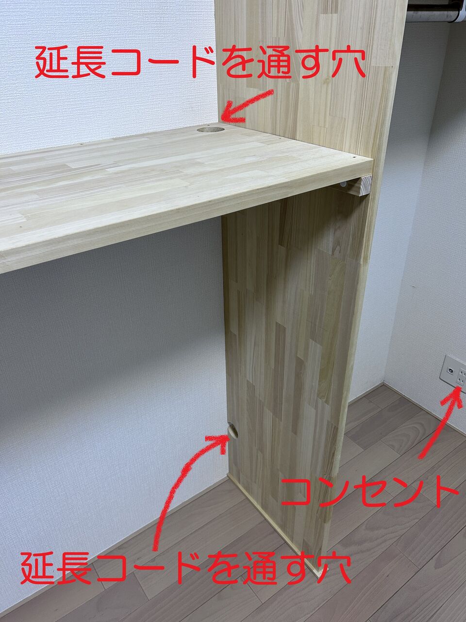 パイプハンガーを付けてコンセントから延長コードを伸ばせるように