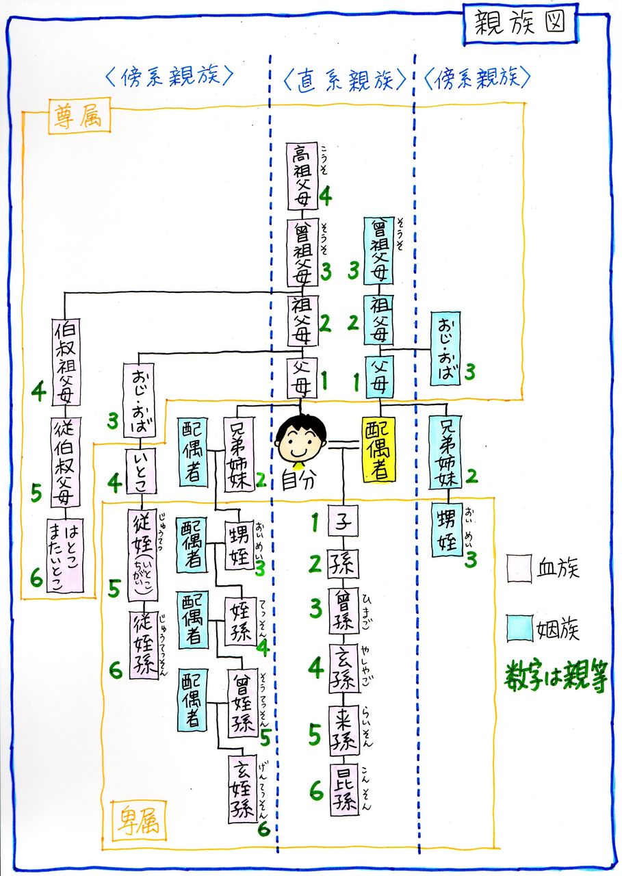 自分の6親等+配偶者の3親等まで網羅した親族図を作るのって