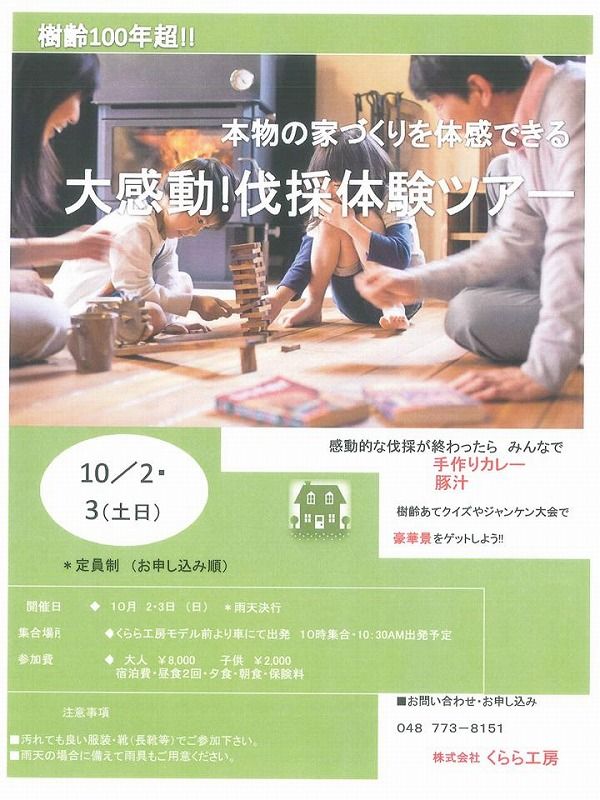 - 10/2(土)・3(日) 『大感動!伐採体験ツアー』のお知らせ
