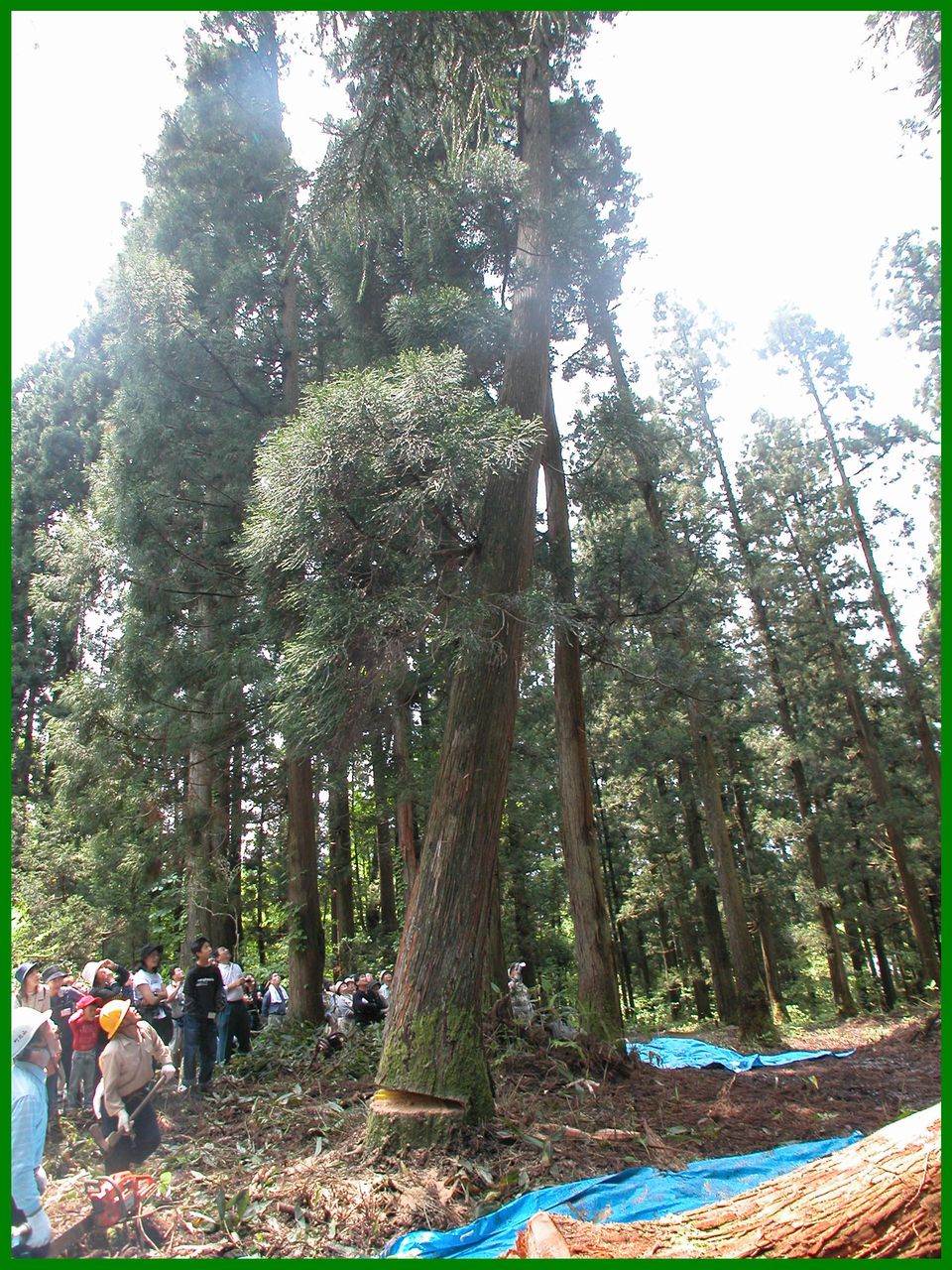 「今日までこの杉の大木は、風雨や大雪、台風などにも負けないで真っ直ぐに成長してきました。これからは私たちがこの命を受け継いで、100年以上も立派に住み続けていける住まい、『家』として利用させていただくのです。」