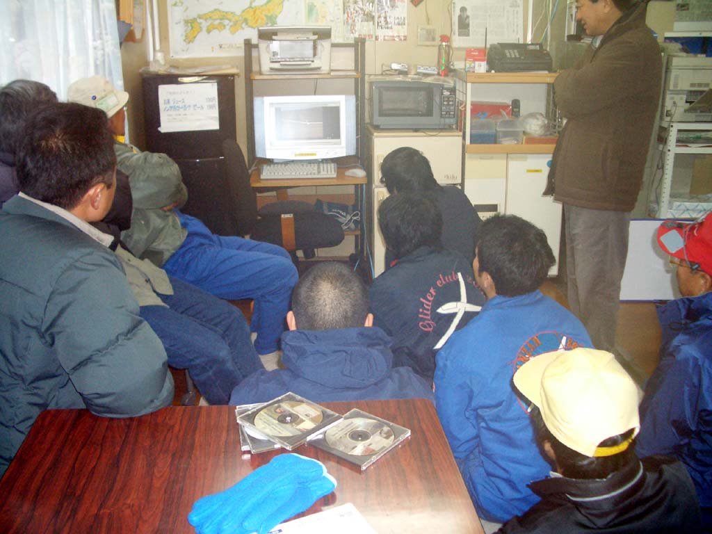 クラブハウスでグライダービデオの鑑賞会、ところが途中でPCがフリーズ。