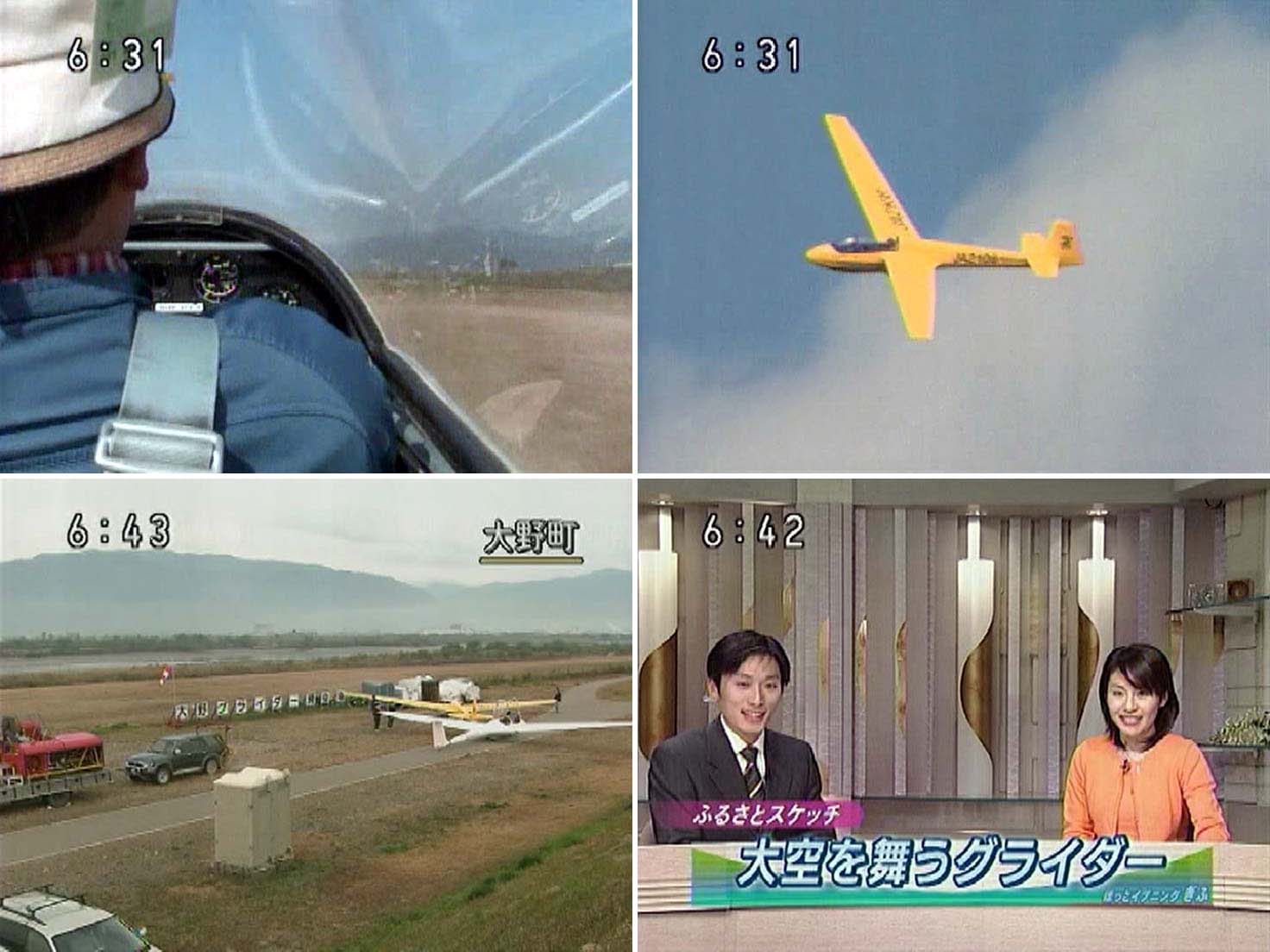 05.12.14 NHK ふるさとスケッチ_02 宇佐美さん操縦、佐々木papaカメラマンの上空からの画像もぶれなくばっちり綺麗に映っていました。天気も飛行時は 2108 の黄色が映える青空に、もちろん迷?俳優たちの解説コメントもよいですね。