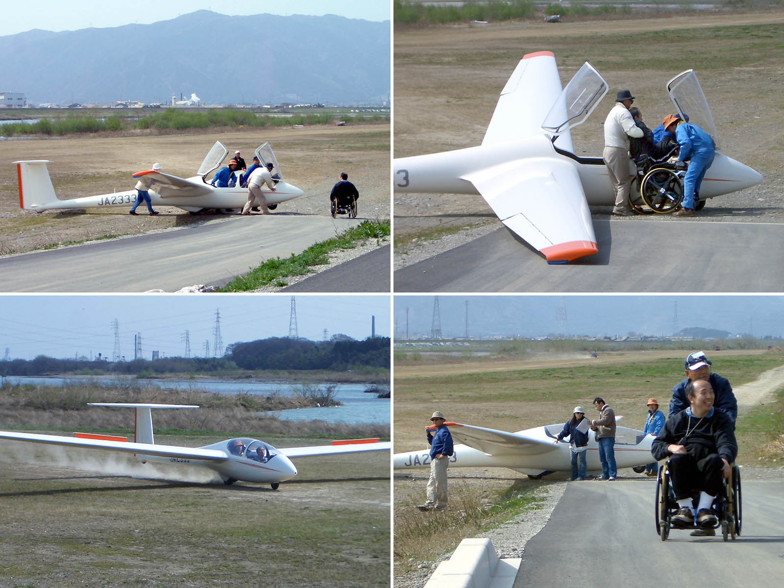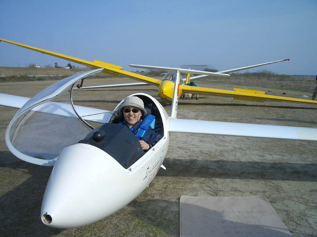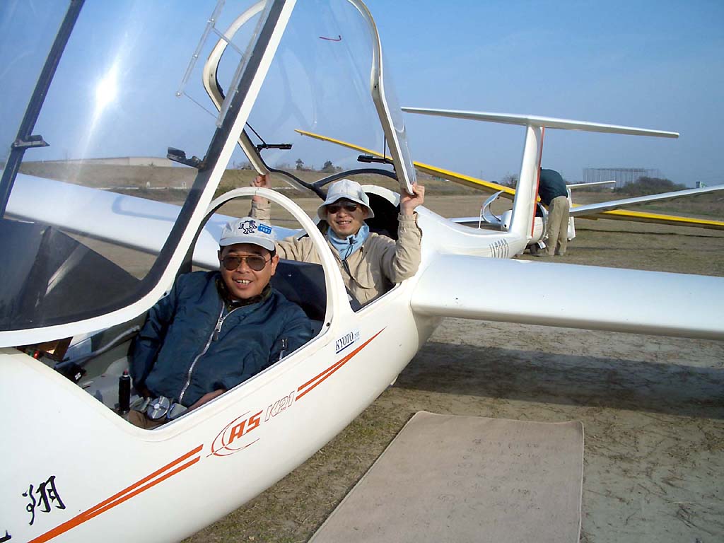 06.0409 平野先生 本日の最長フライトは平野さん、降りてきた顔は緩みぱなし(右下写真)、先々週の52分引き続いて今日は50分でした。
