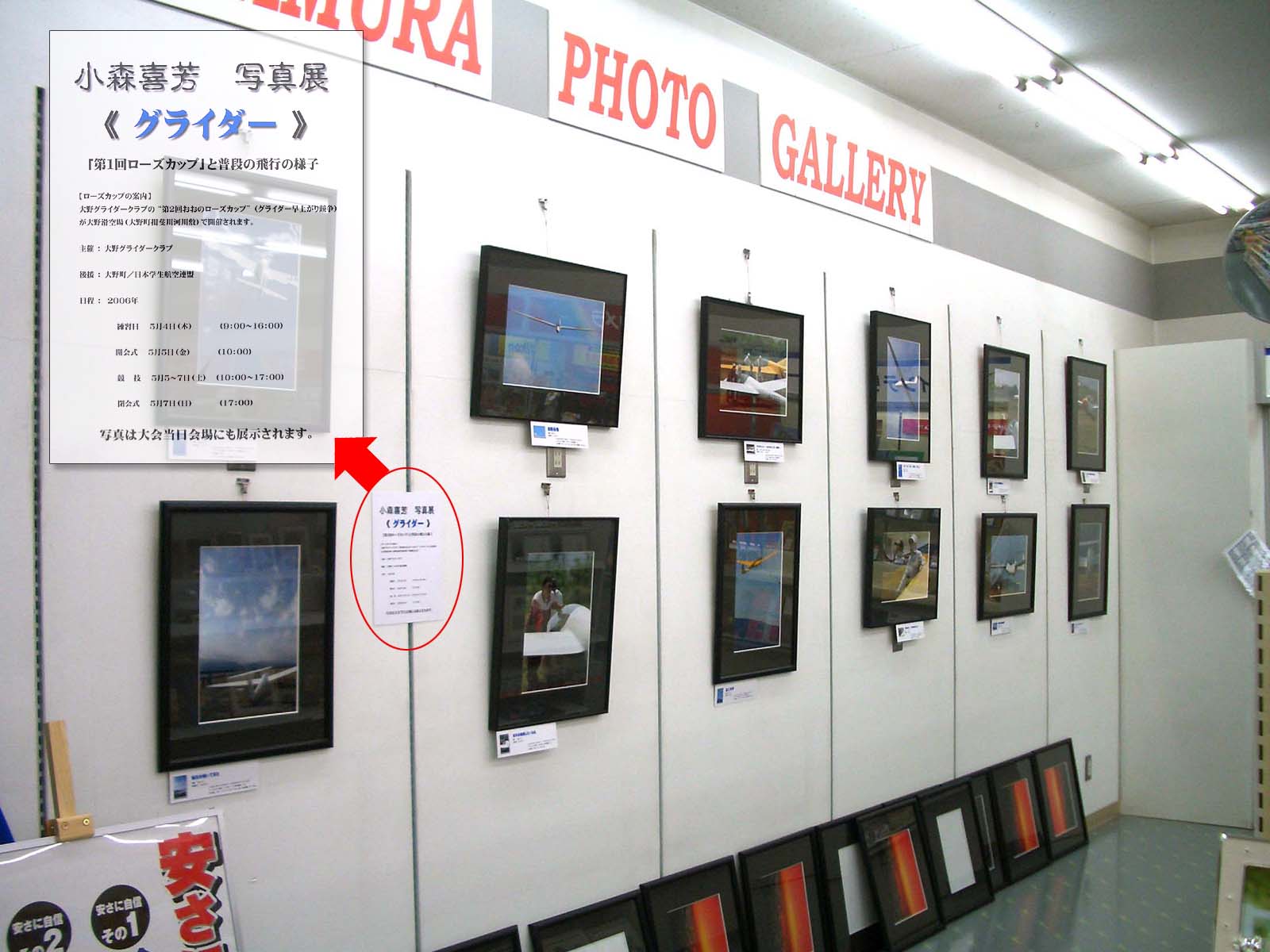06.04.02 小森さん写真展 OGCのグライダー写真展が カメラのキタムラ穂積・穂積店 にて始まりました。恒例になっている 小森喜芳氏 の写真展です。