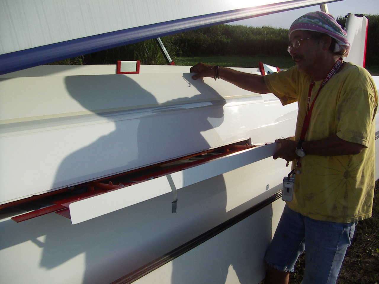 060723 飛行と整備 今日の予定は ミカエル(ASK-23)の整備が主体でしたが、体験搭乗の希望が入っていましたので ASK-13 の組み立てを全員で行って整備、フライトと分かれました。