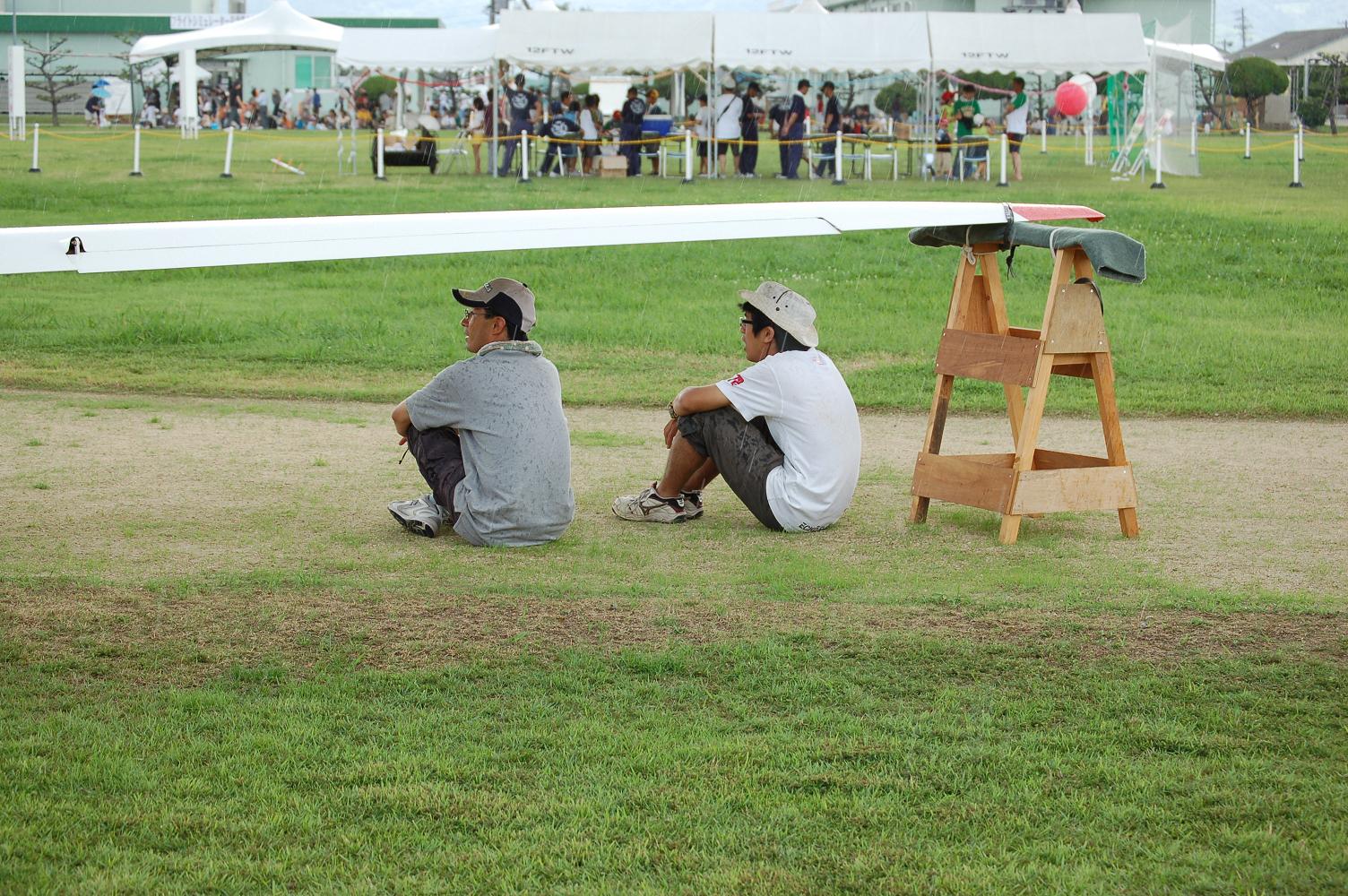 大阪からの前田さん10分間の体験飛行後 OGCに入会されて本日2回飛行。発航12発で搭乗希望者が無くなり撤収した時点で小雨、ラッキーな天候でした。