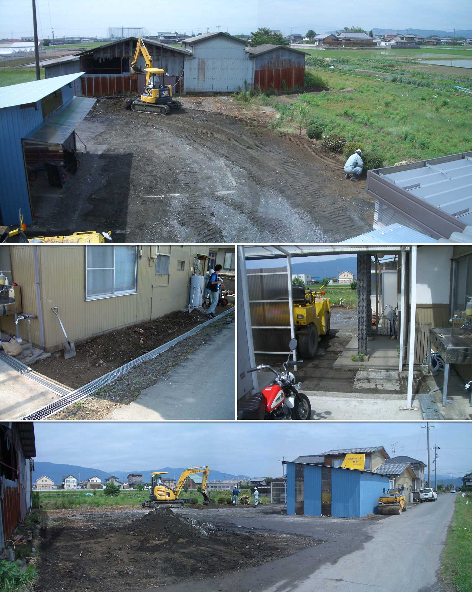 今日は表土を削って砕石を敷いて填圧まで行われました。