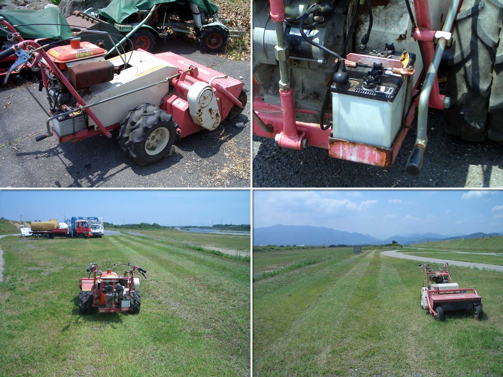 作業能力は"草刈民代トラクター"とは比べ物になりませんが刈り上がりの良さや 狭い場所の取り回しは小型草刈機の良さが発揮できます。