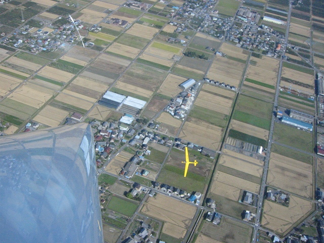上昇気流をつかんで上がり、名古屋のツインタワーや伊吹山を眺めて制限時間いっぱいの飛行でした。