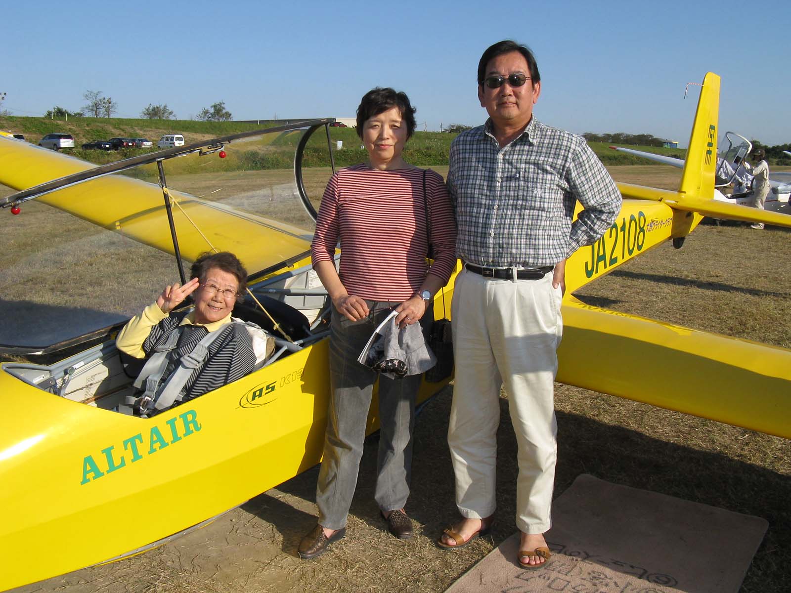 071028 体験搭乗_01 名古屋の82歳のおばあちゃんが揖斐川町へ食事に来られ、グライダーを見つけて冥土の土産にと体験搭乗されました。