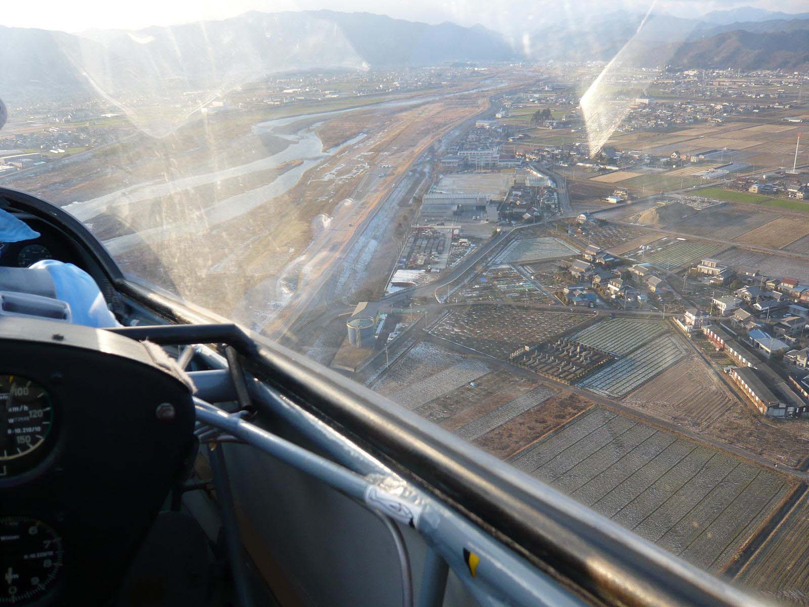 木曽川滑空場からの無線で気象状況をモニターしつつ、池田山の