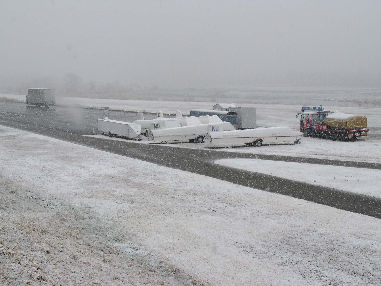 雪が溶けても滑走路はぬかるんで路面を傷めるので飛行は中止。