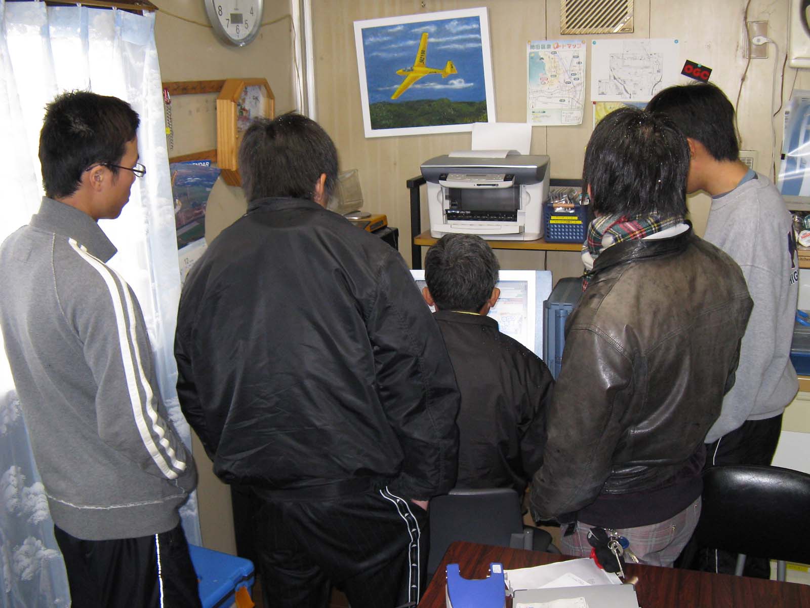 クラブハウスではインターネットで天候調査、陸送経路、いつ出発するか等の検討が行われていました。