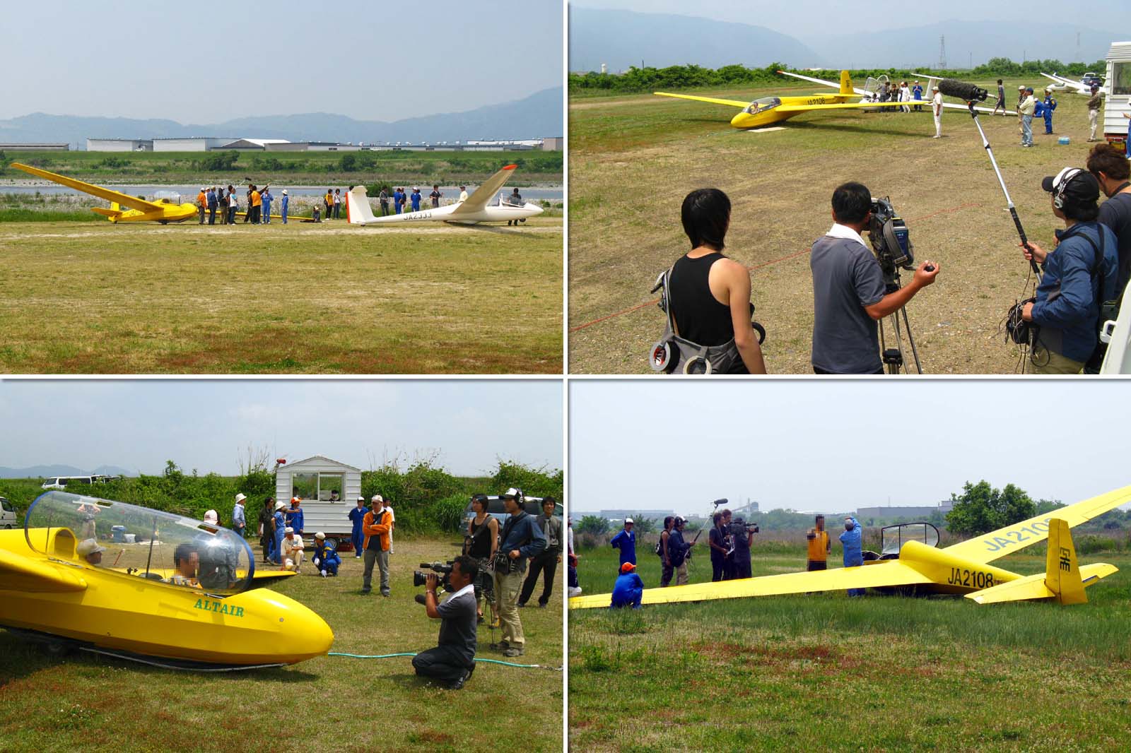 最長フライトは、昨日と同じ京大・学生の小林(右)君の1時間47分。(京大DISCUS)