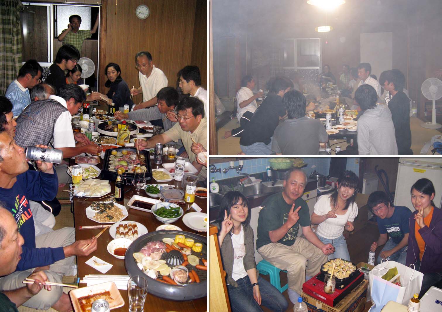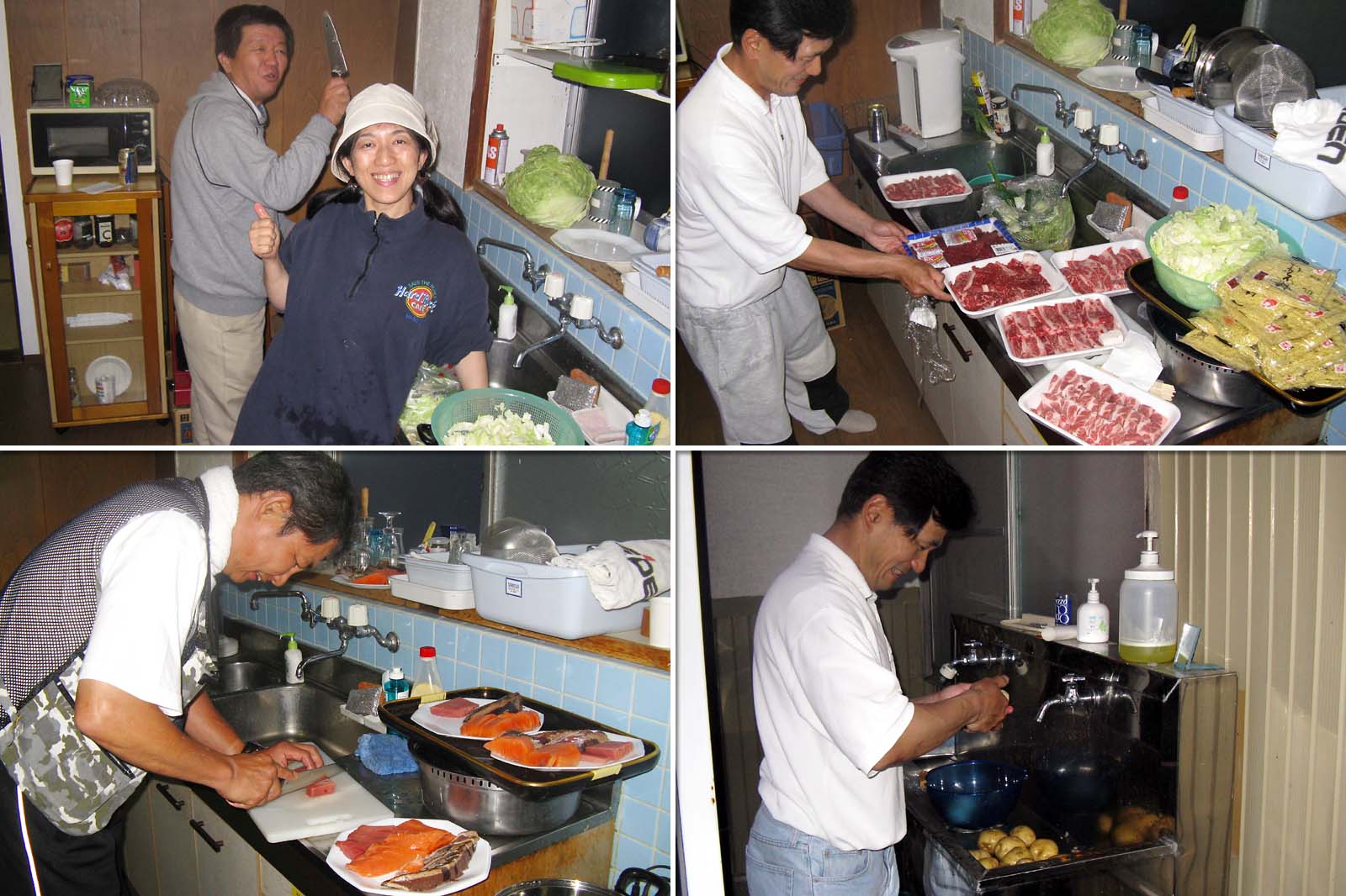 080531 祝賀会準備.jpg 一方、撤収作業が始まっている頃、宿舎ではキッチンを徘徊する会員が!