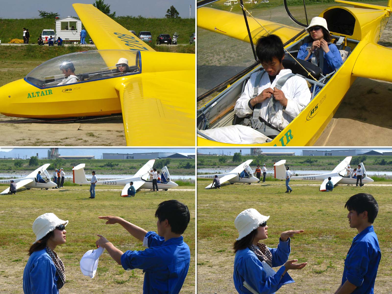 080517 初参加の古川さん まだ飛べたのですが 次の搭乗者があったのと空腹で降りてきました。 2時間2分。 本日の総発航は39発でした。