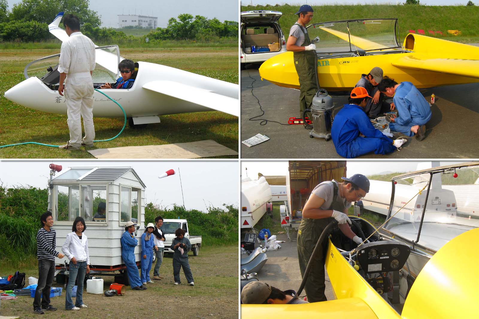 参加の会員は榊原さんと本日入会の大阪工業大学(以下大工大)OBの松田さん(写真:右上)だけで、大工大の学生さん中心のフライト、総発航数は41発、大工の合宿には珍しく?滞空・超過料金の無い一日となりました。