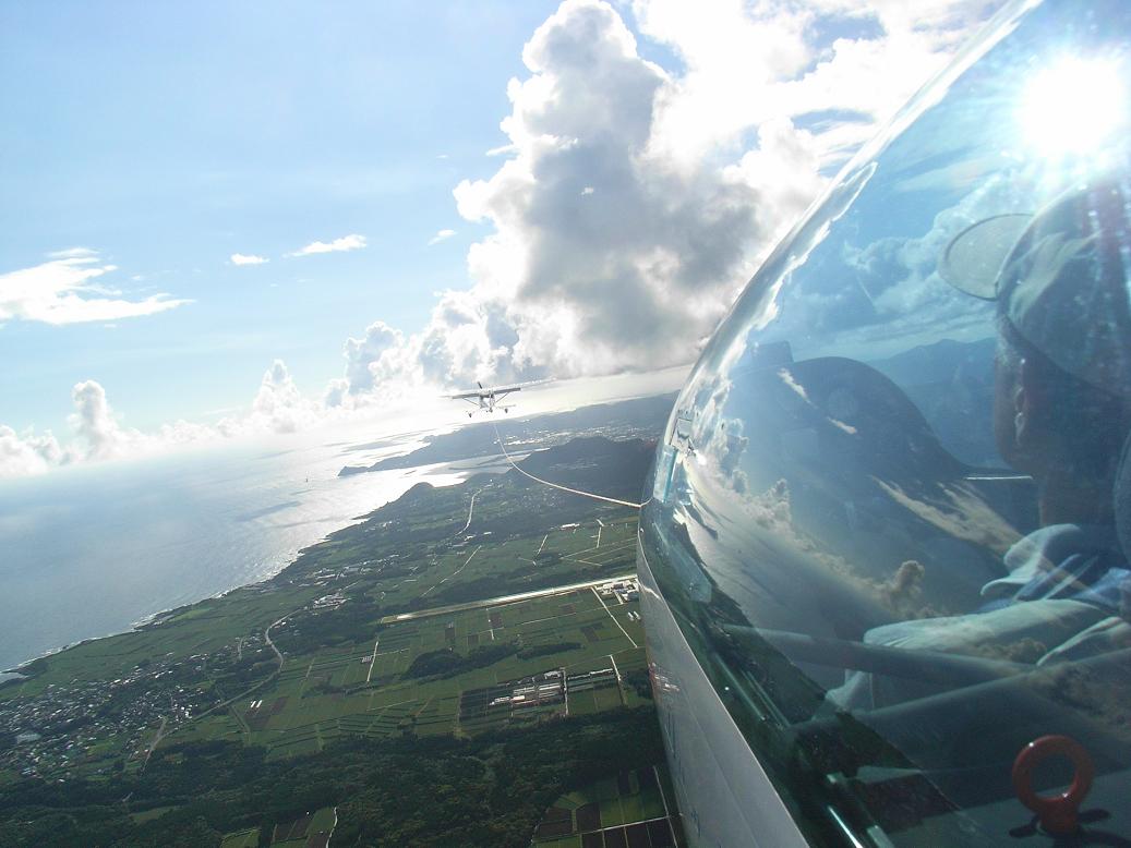 080816 体験搭乗 先月、体験搭乗されたのは 奥様 だけで、ご主人はグライダーの離陸上昇を見て遠慮されました。