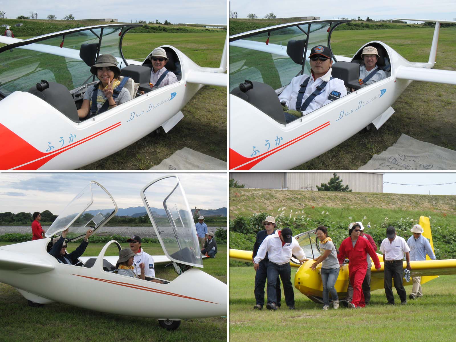 S崎さん(写真左上)、Q大航空部OG。 O田さん(写真右上)、T海大航空部OB。二人とも別の場所でも飛んでいらっしゃいます。