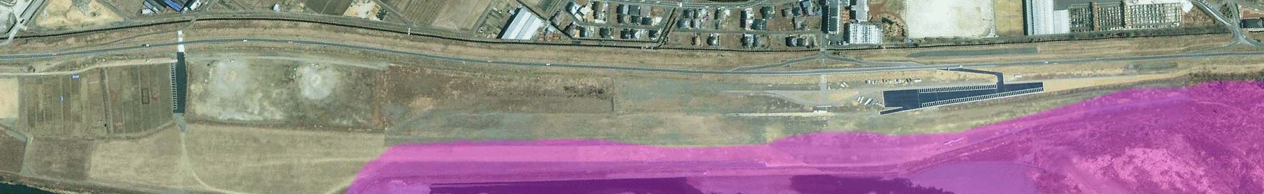 滑走路に残った漂流物の位置から判断すると、部分的に水没してました。 (赤い部分)