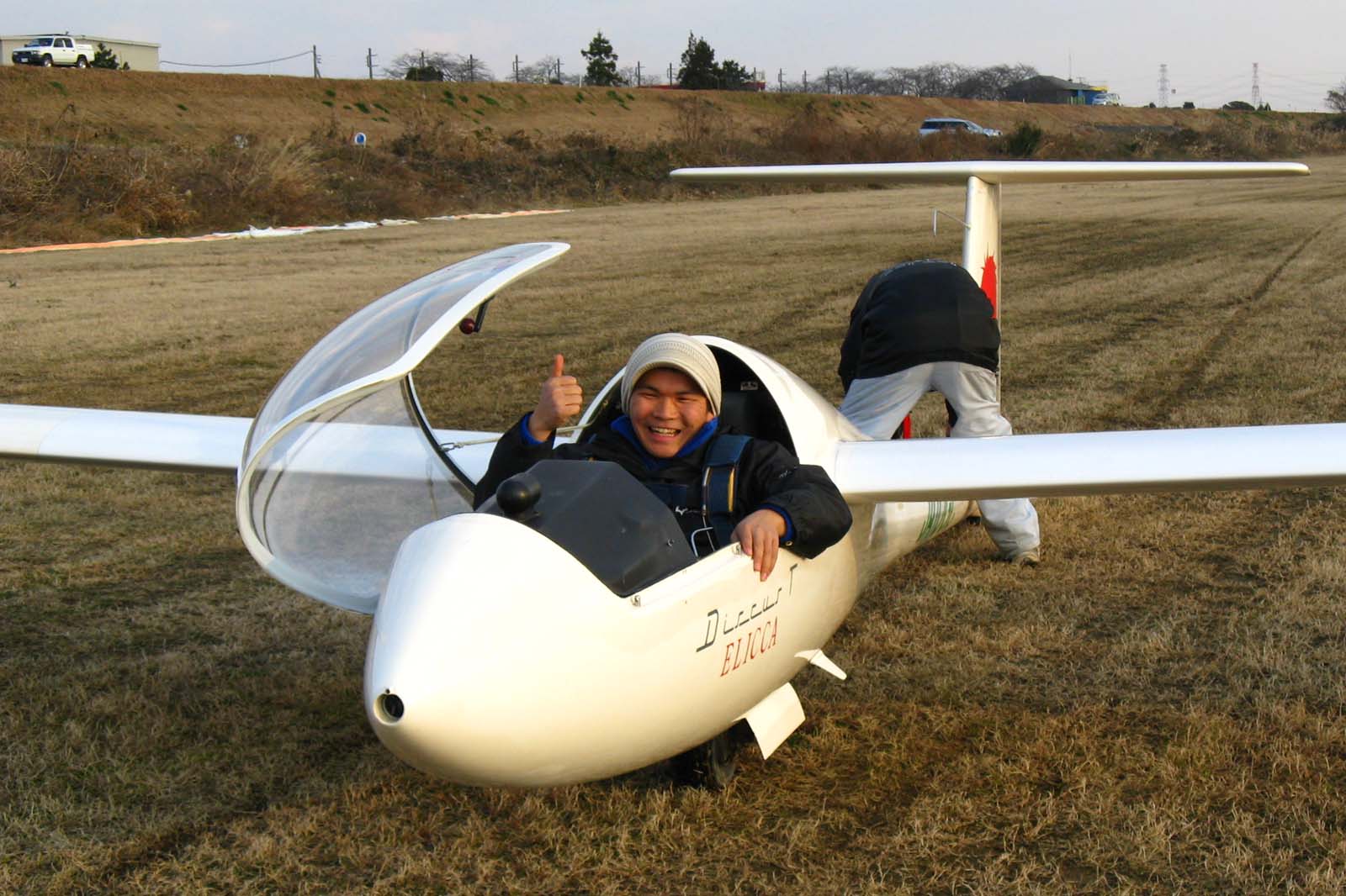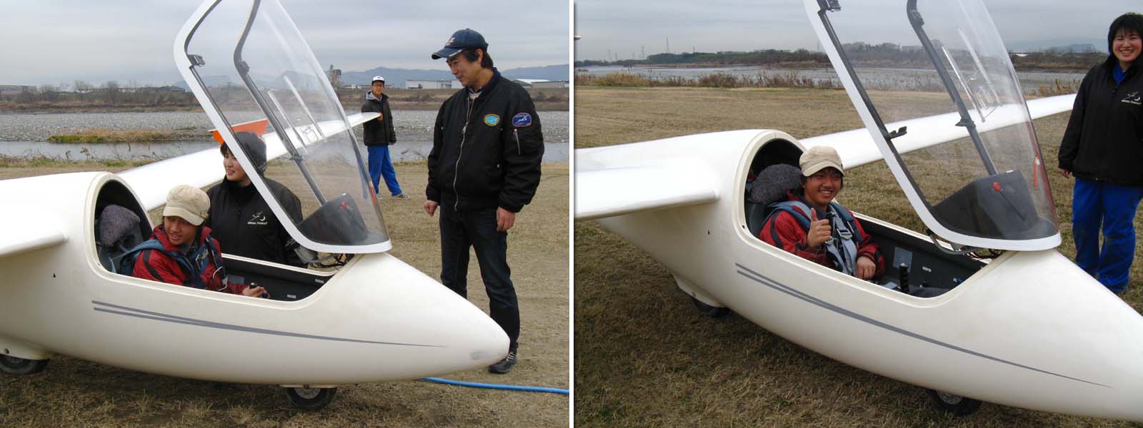 彼が入部した頃から一度グライダーに乗ってみたいとのご希望で、3月の卒業を前にやっと夢が叶いました。