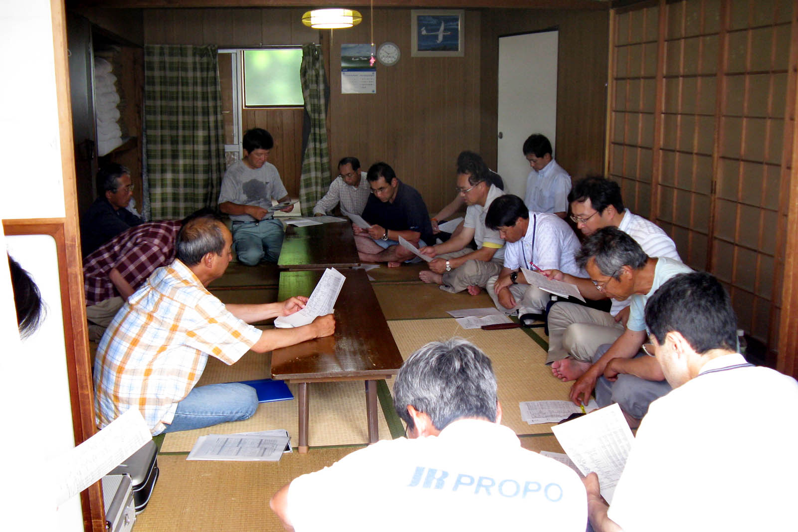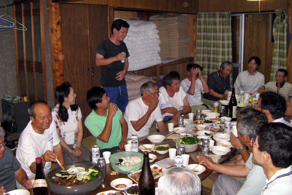 仕事が終わって夜からの参加者も多数、最近の入会者も参加、宿舎から溢れそうです。