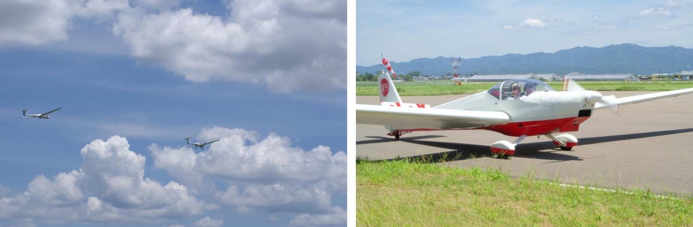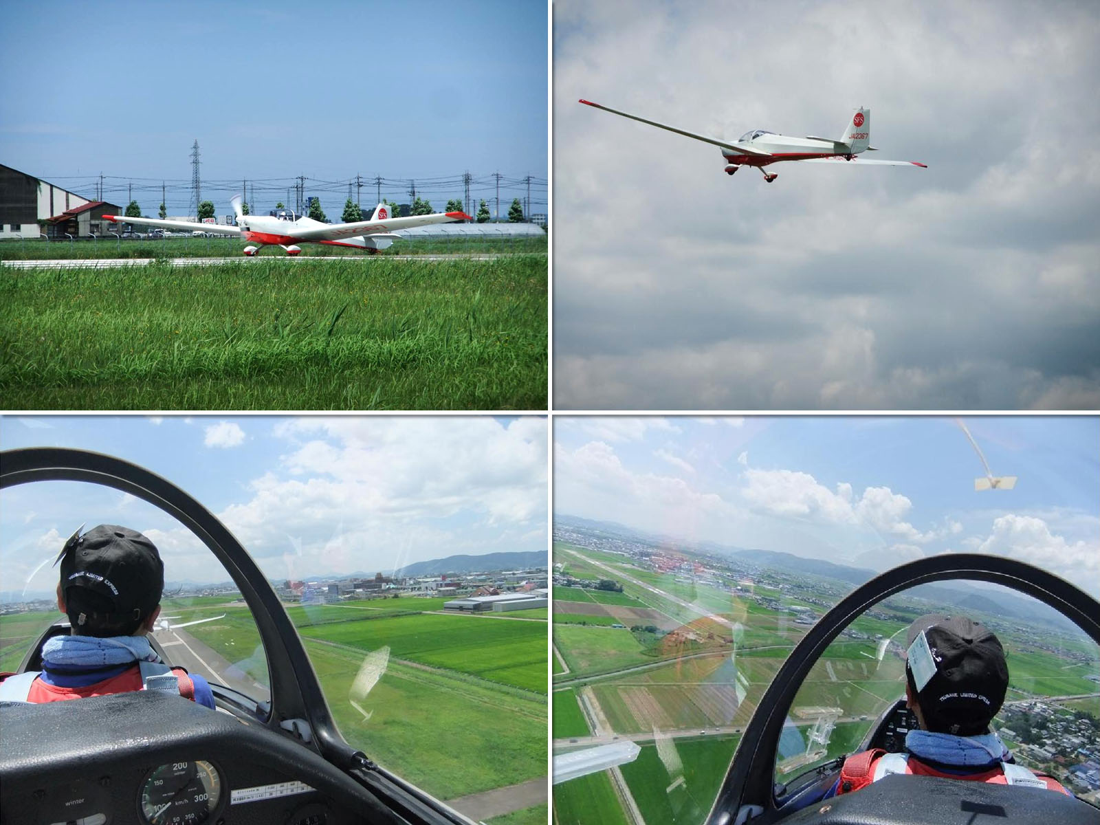 暑い中、飛行機曳航とモターグライダーのフライトを楽しみました。