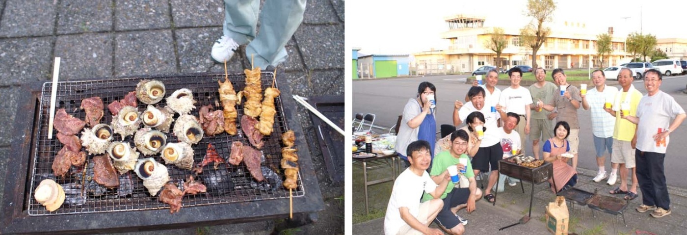 宿舎前でバーベキュー・パーティーを楽しみました。