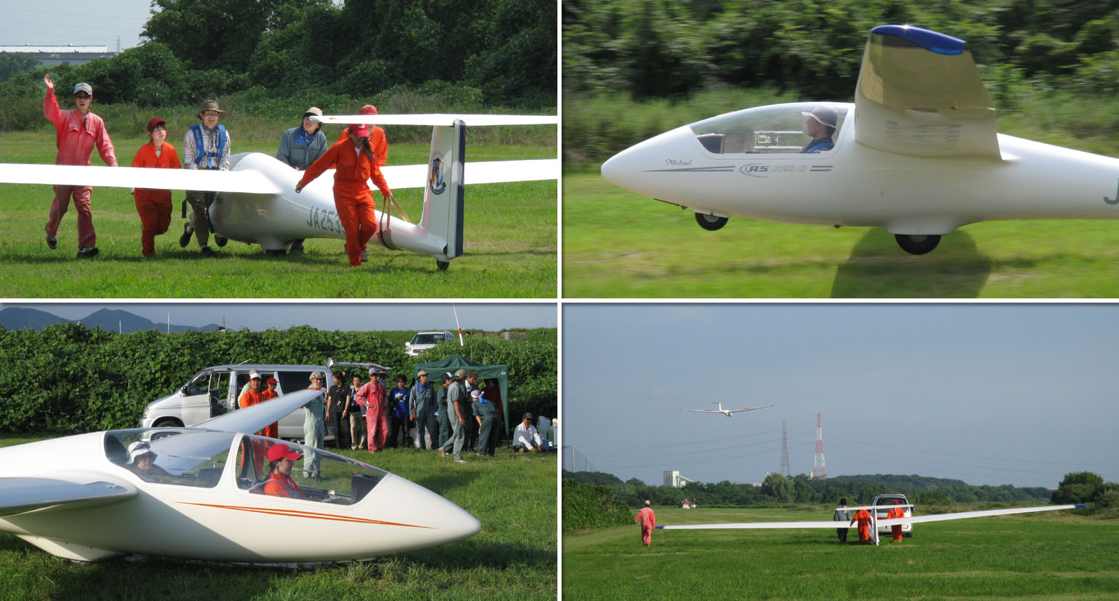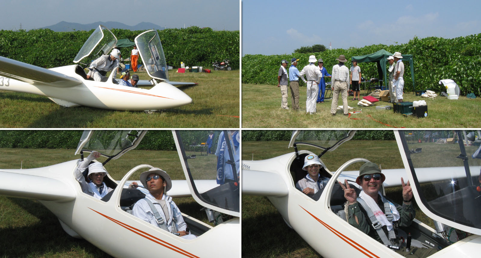 100808 OGC+龍大・関大_2 最高は、武田さんの ASK-23 が1時間23分、同じく2回目の飛行も1時間11分で今日のチャンピオンに輝きました。
