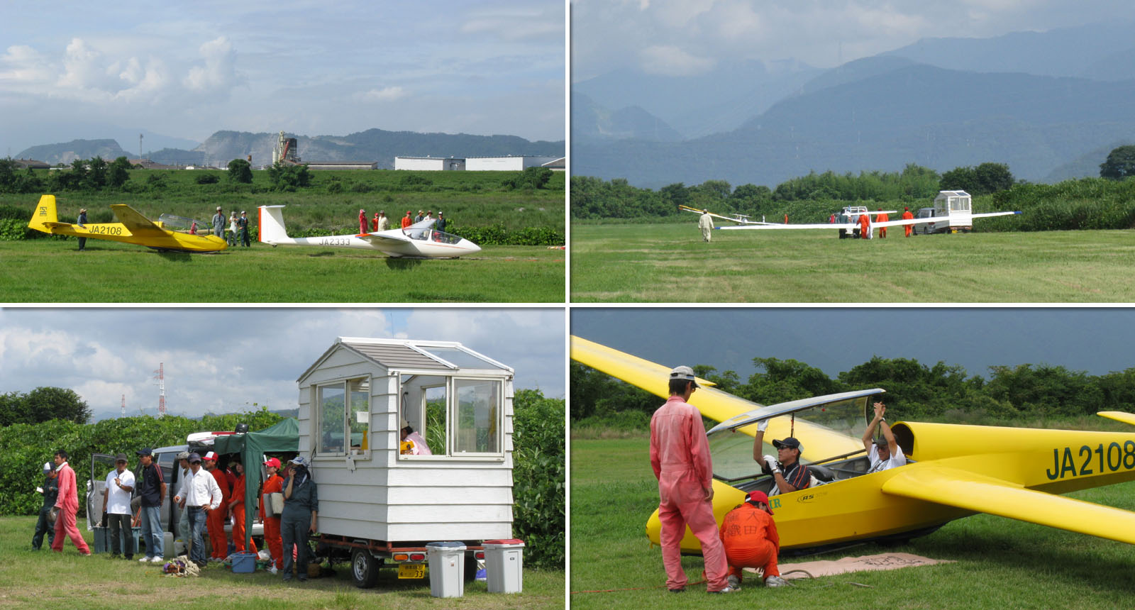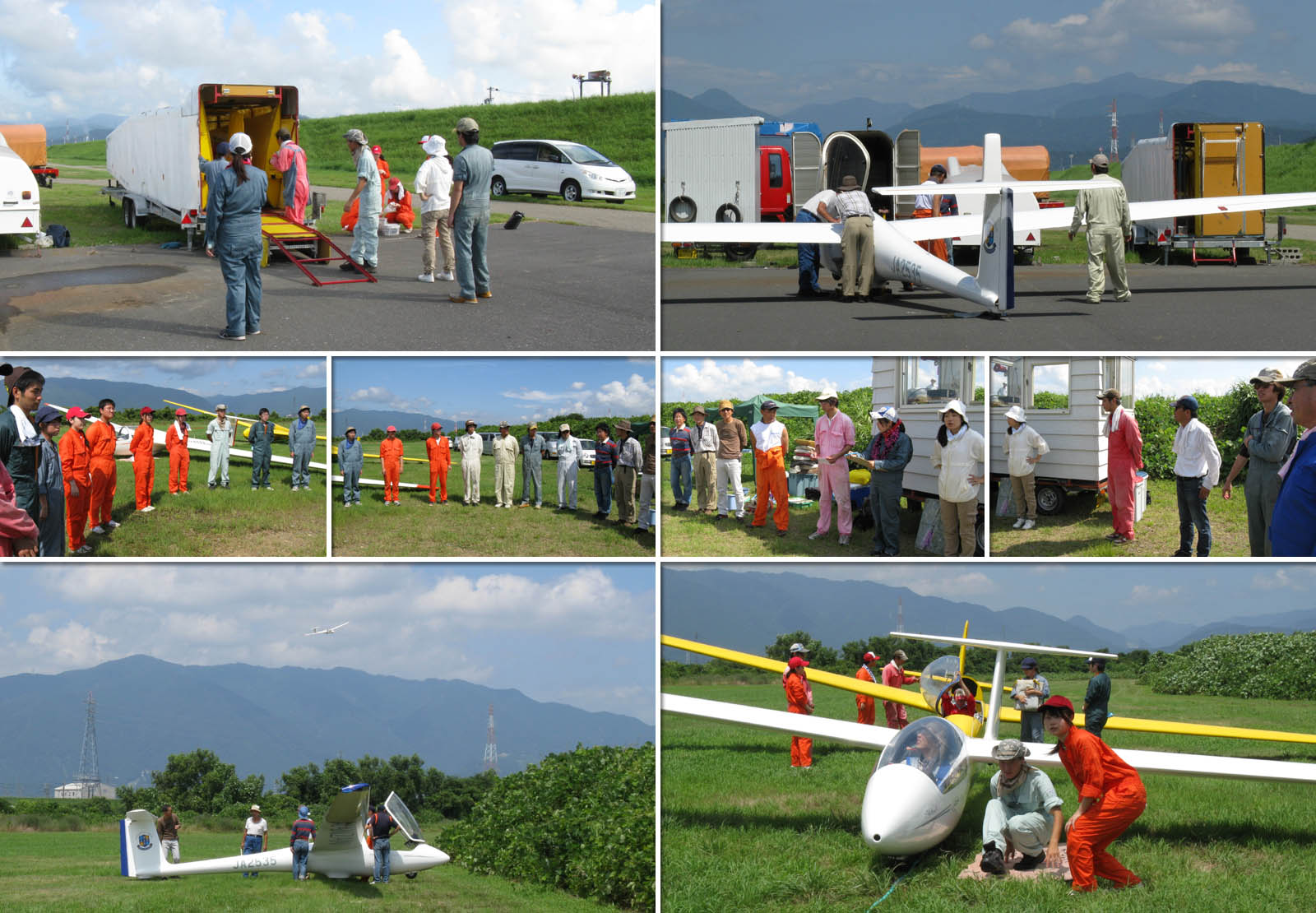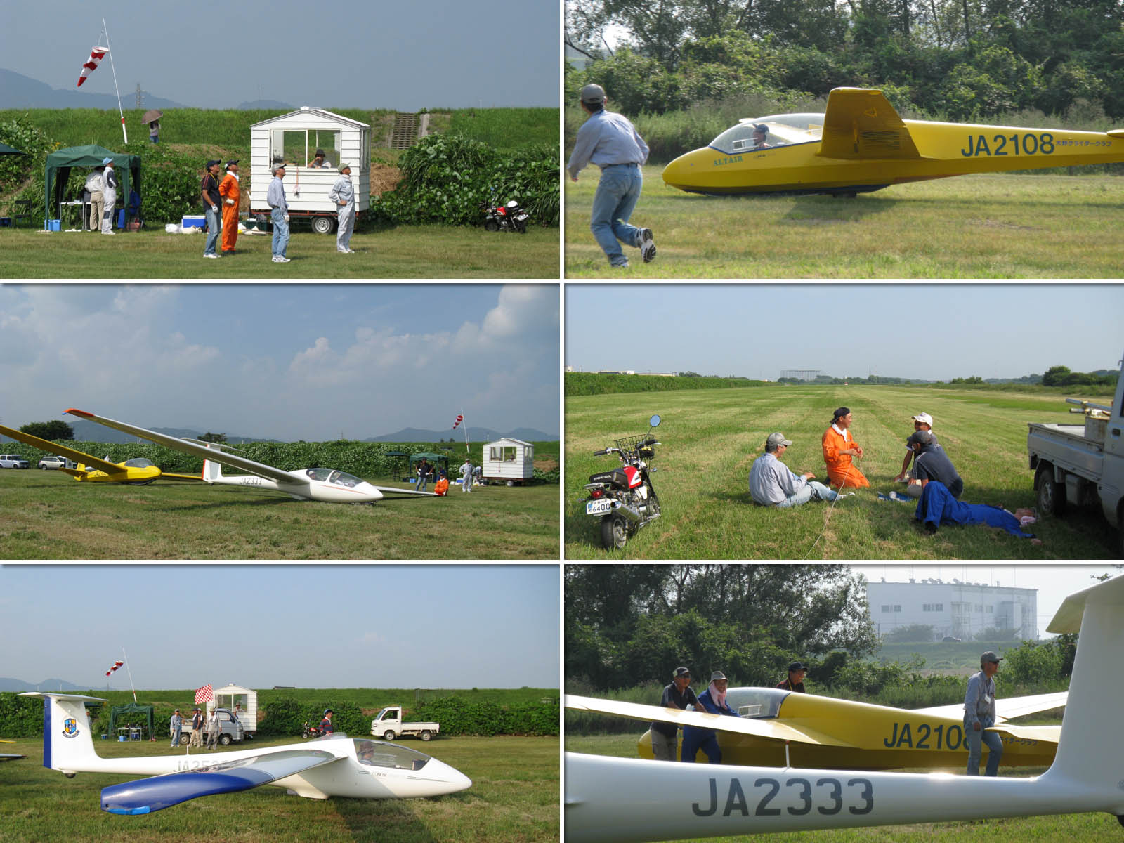 100821 OGC単独_02 昼休憩を終えた 14時過ぎに 近藤+岸教官ペアが 2333 で60分、橋本+堀田教官ペアが 2108 で56分、そのほか10分超えが3発、 午後5時30分頃まで飛んで 飛行回数は16発でした。