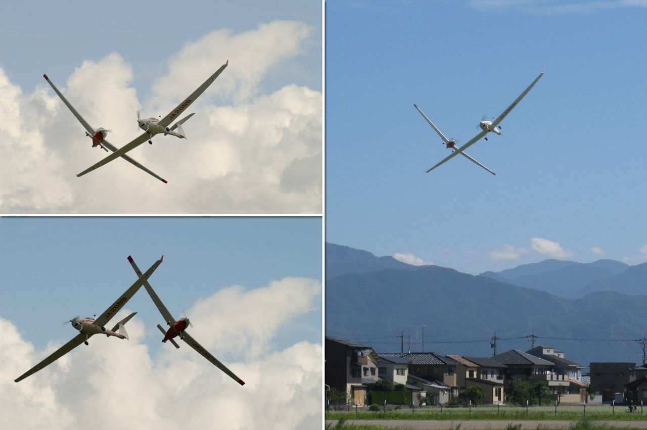 エプロン上空で JA20BB がローパスで JA2367 を追い抜く