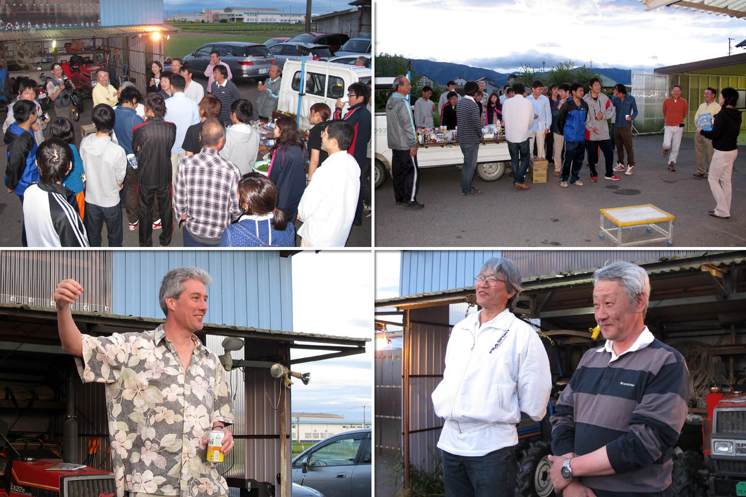 120503 レセプション_02 (ガーデンは宿舎中庭、テーブルは軽太郎の荷台にたくさんのごちそう?というところが大野らしいでしょ。)