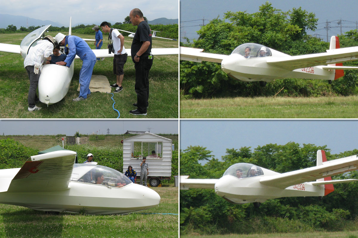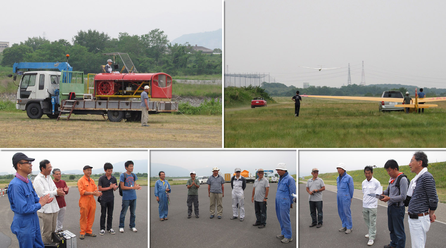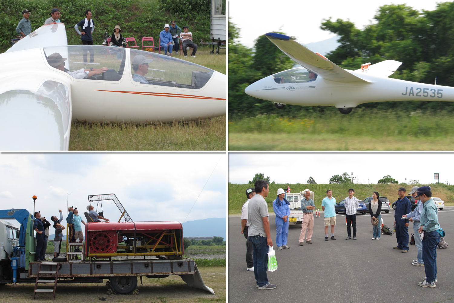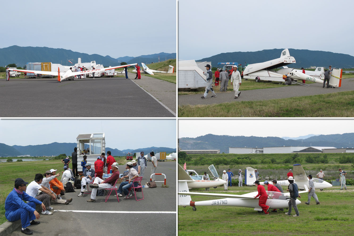 参加人数が10名と少なくゲストの皆さんに一日中お手伝い頂き何とか無事に乗り切れました。 ゲストは京都大学グライダー部の OB 3名+ジュニア 2名、それに加えて、遂に武田会員が女性を連れて来ました。