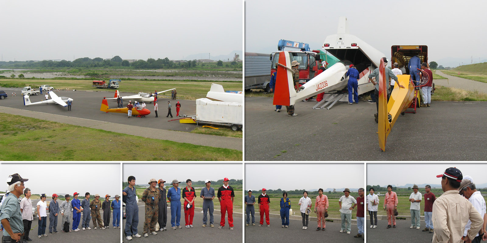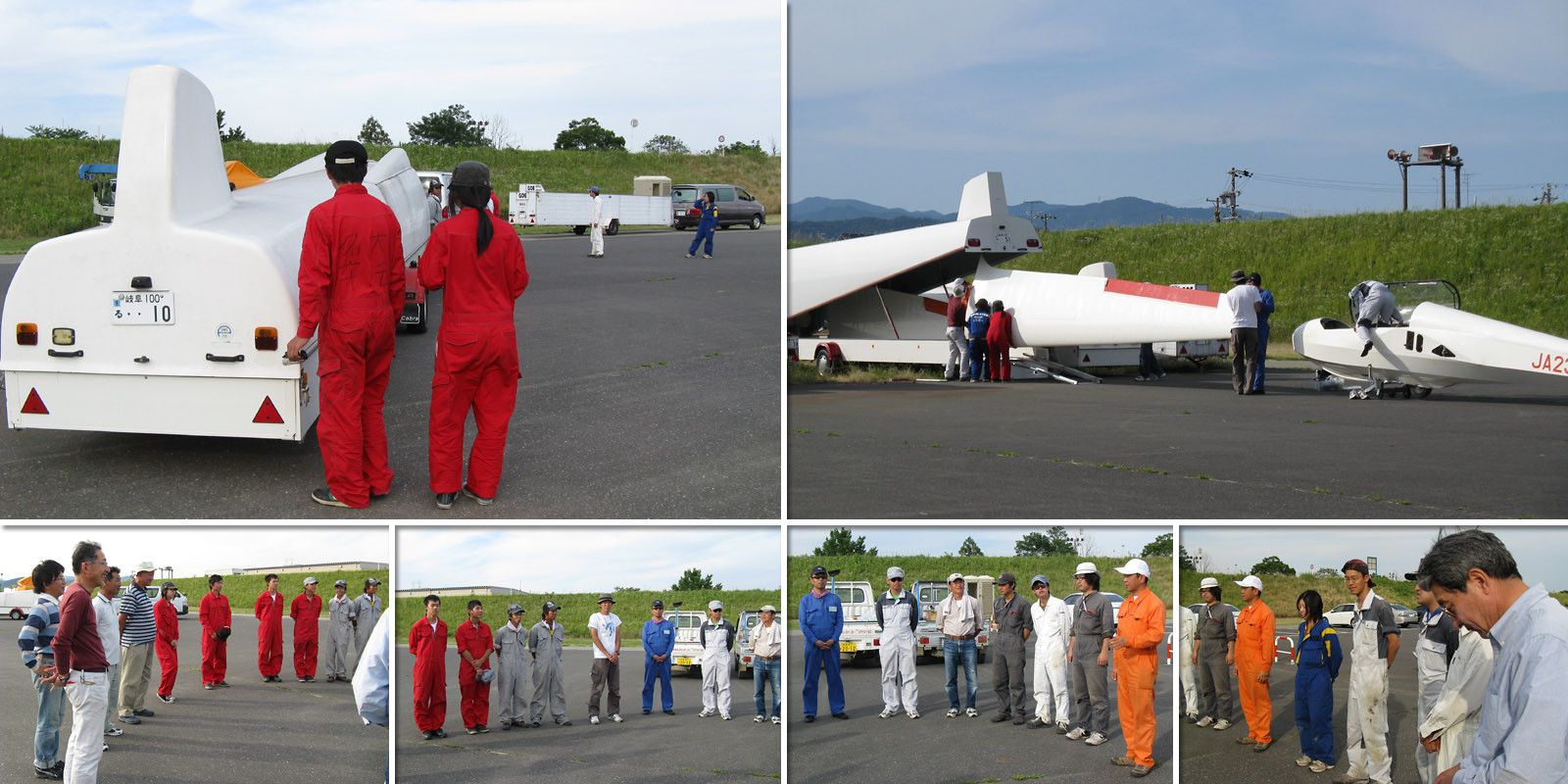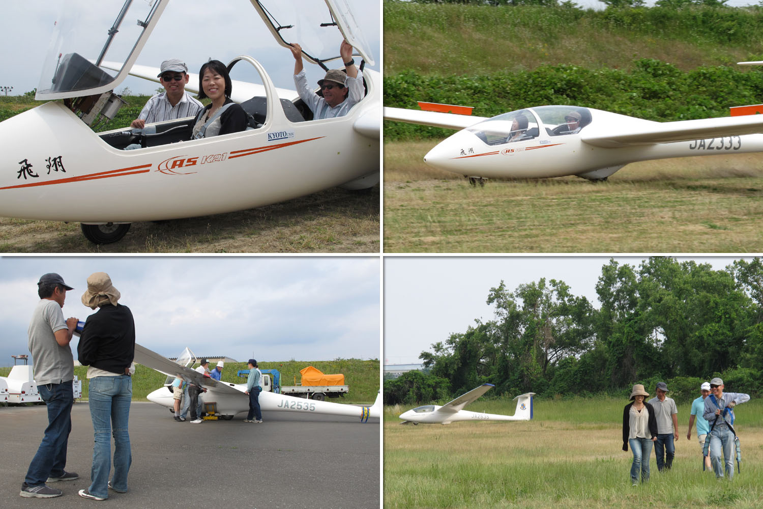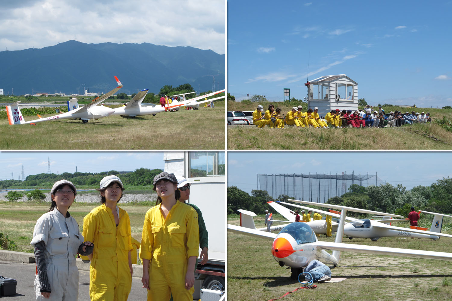 参加人数が10名と少なくゲストの皆さんに一日中お手伝い頂き何とか無事に乗り切れました。 ゲストは京都大学グライダー部の OB 3名+ジュニア 2名、それに加えて、遂に武田会員が女性を連れて来ました。