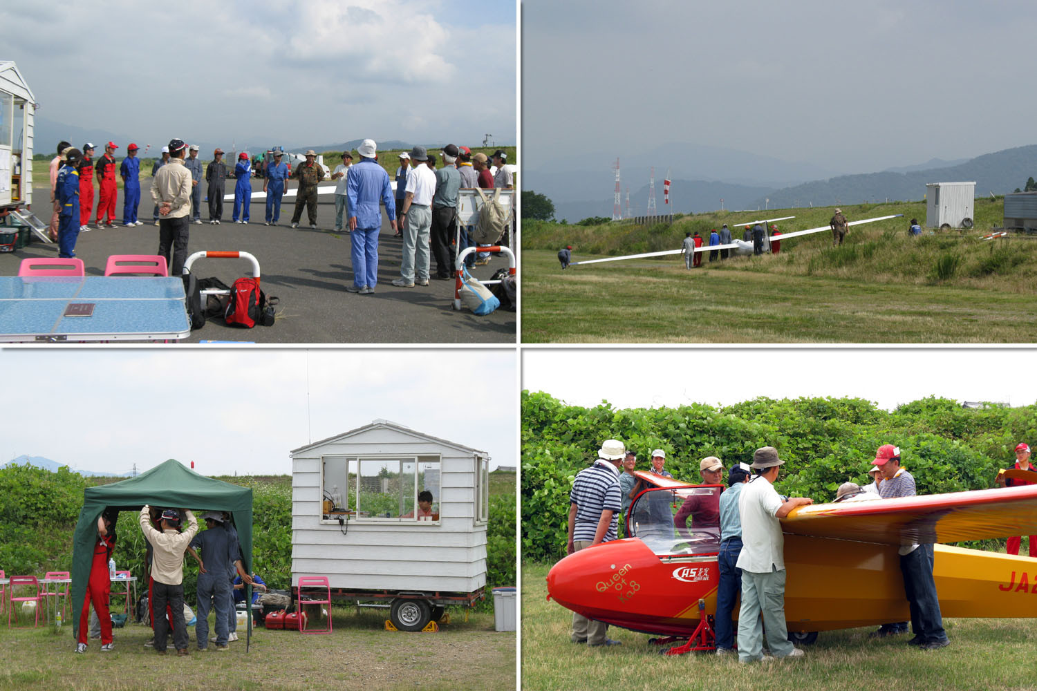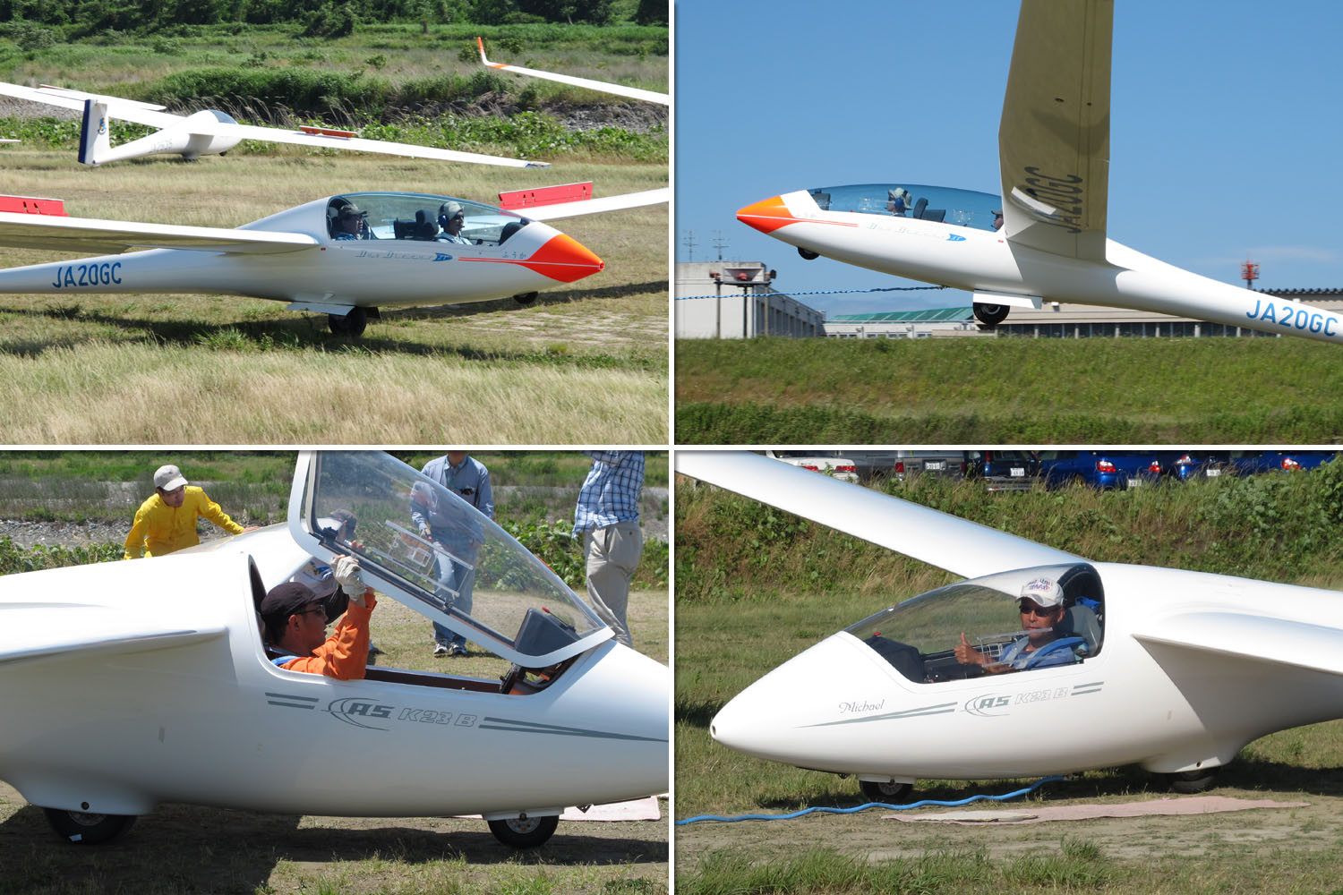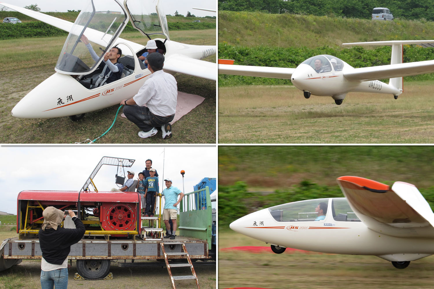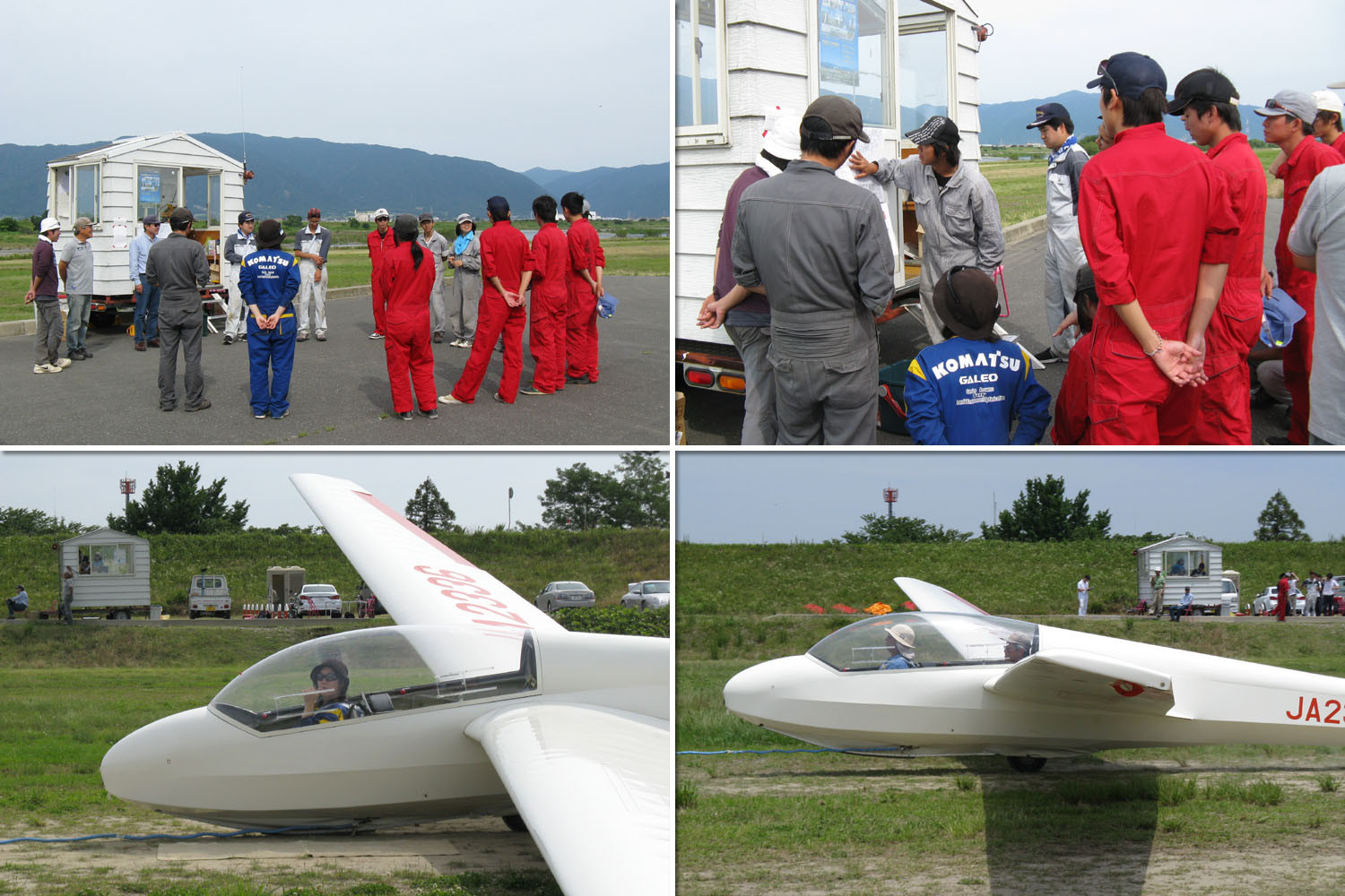 参加人数が10名と少なくゲストの皆さんに一日中お手伝い頂き何とか無事に乗り切れました。 ゲストは京都大学グライダー部の OB 3名+ジュニア 2名、それに加えて、遂に武田会員が女性を連れて来ました。
