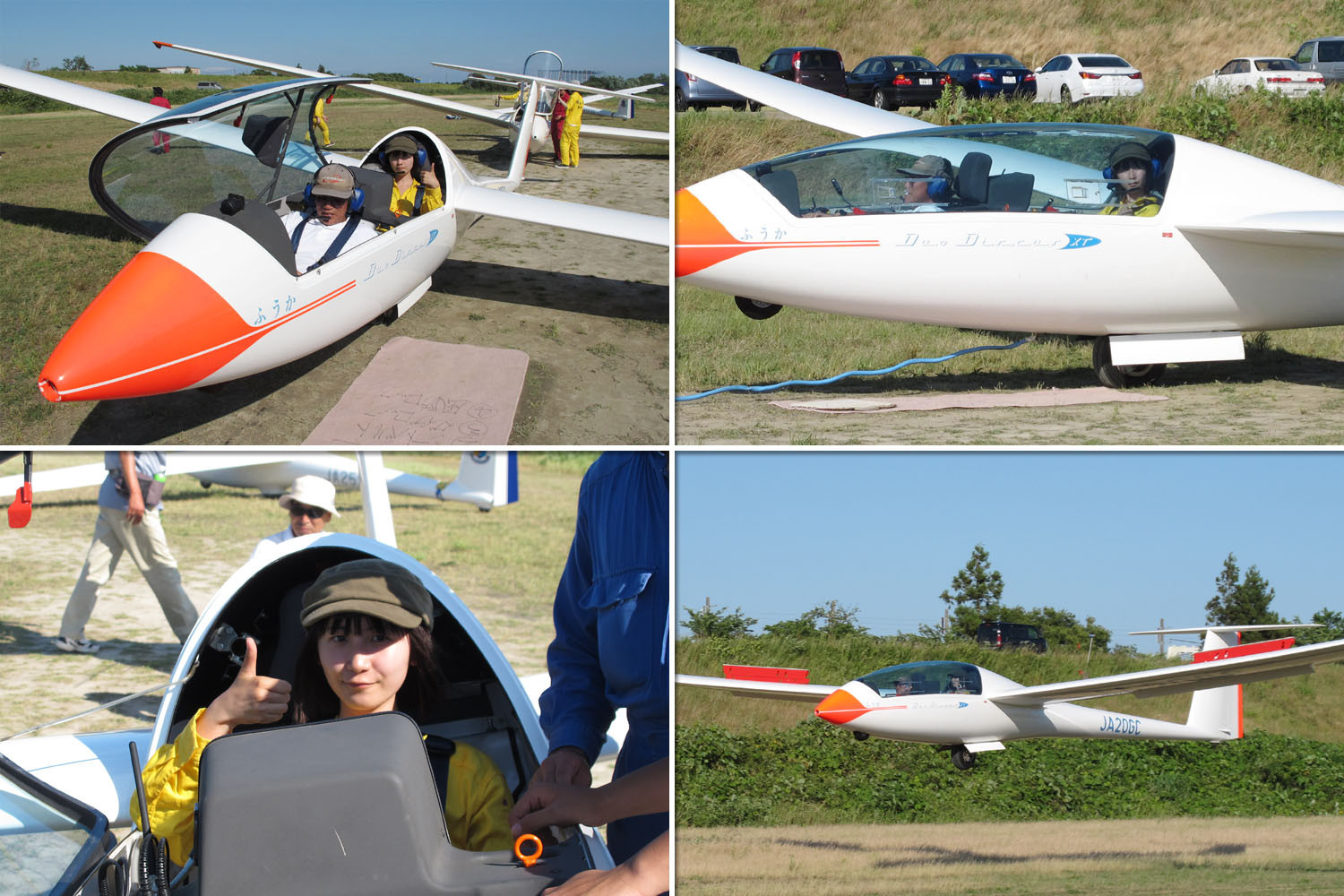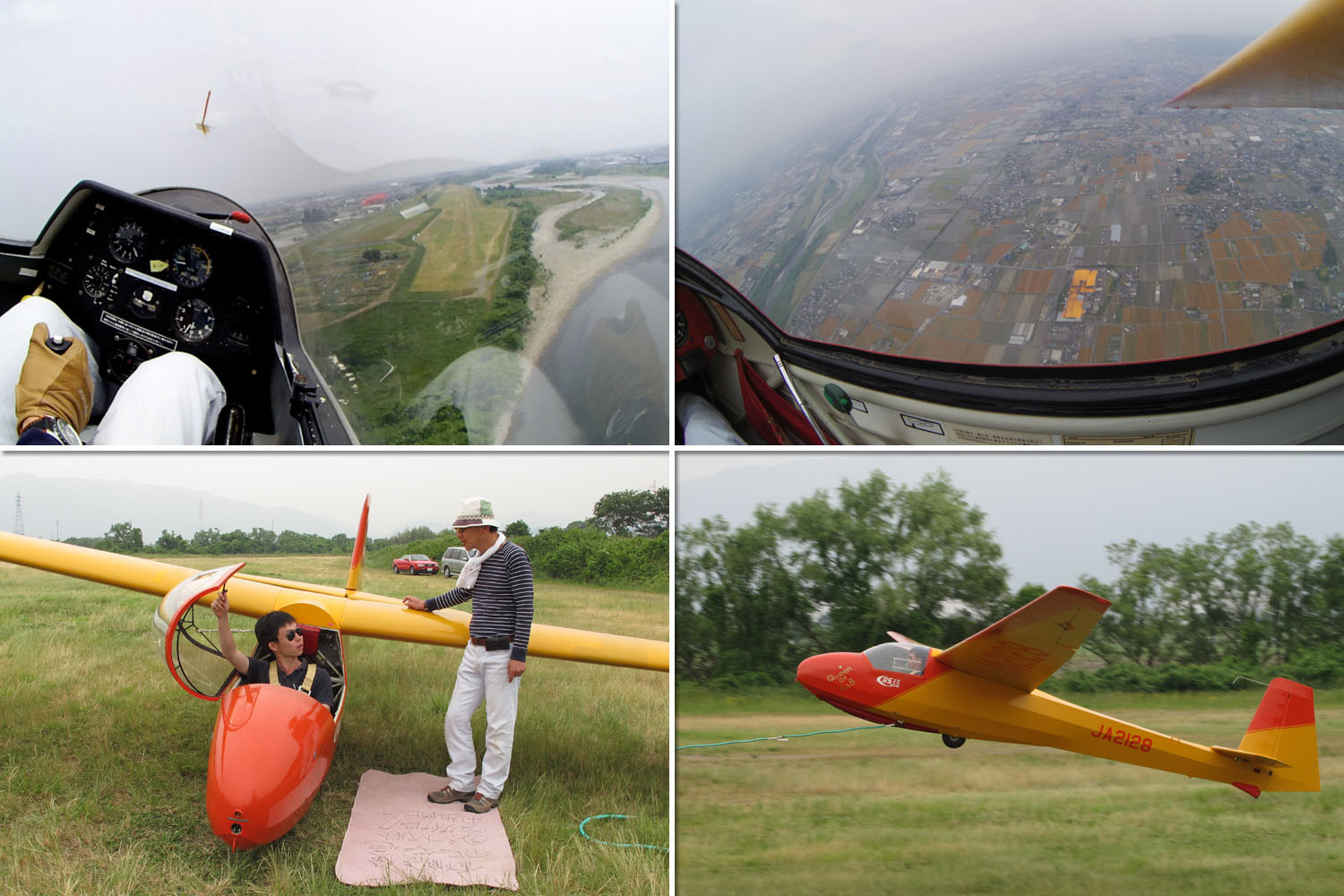 「離陸の時の加速感が楽しい♪ お仕事で乗る電線パトロールヘリとはまた違った感じ。 眼に見えないのに上昇気流でいつのまにか高度あがってる、 風の力ってすごいね...風に乗れるっていうのが不思議な感じでした。」 と熱く語っていました。